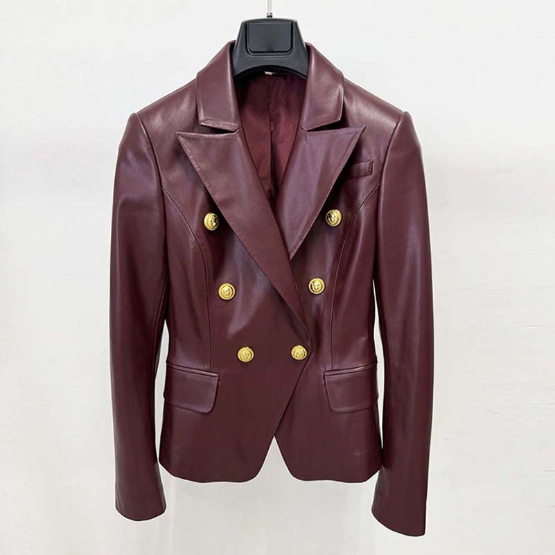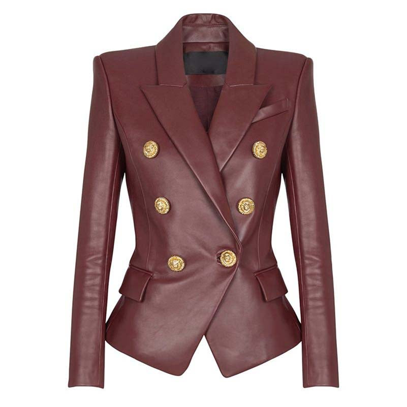 Double breasted blazer 6-button collared burgundy jacket for women