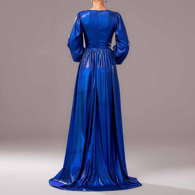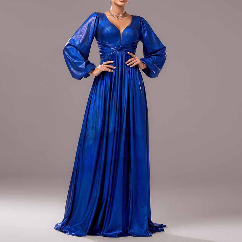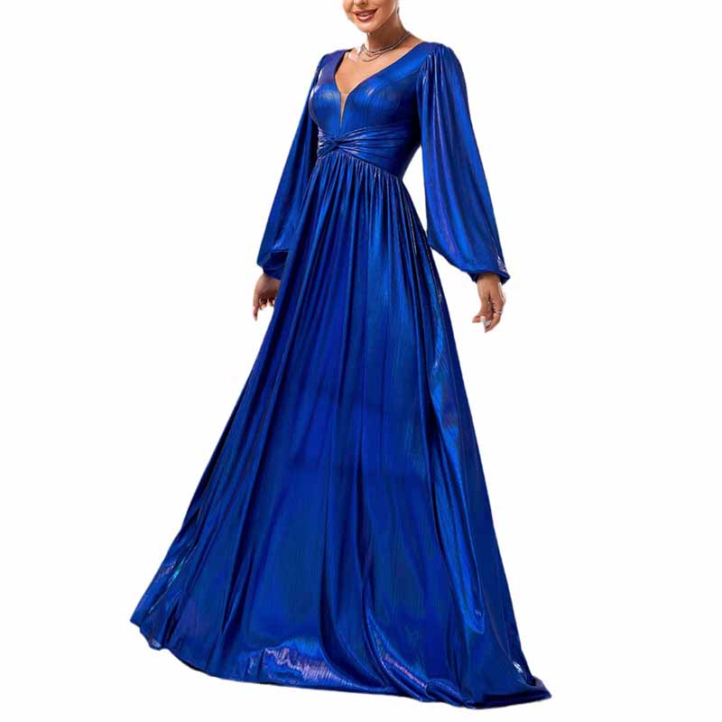Gilding Royal Blue Prom Dress V-Neck A-Line Evening Dress With Sleeves