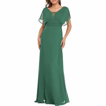 Women Chiffon Bridesmaid Dress Puff Sleeves Long Prom Dress