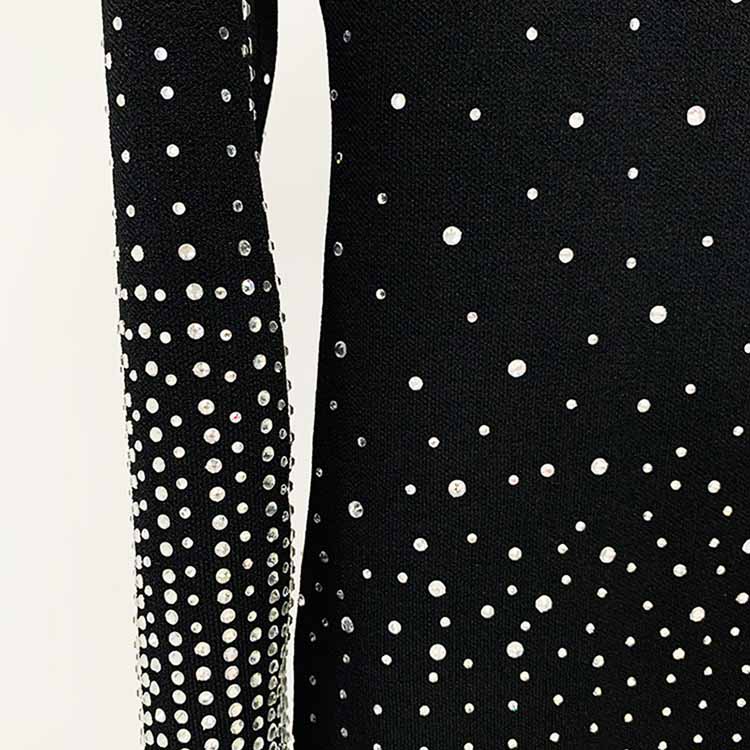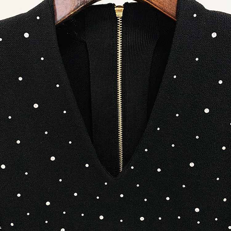 Women Rhinestone Bling Bling V Neck Knitwear heat-melting Long Jumper / Mini Dress Black , Birthday Party, Evening Out Dress