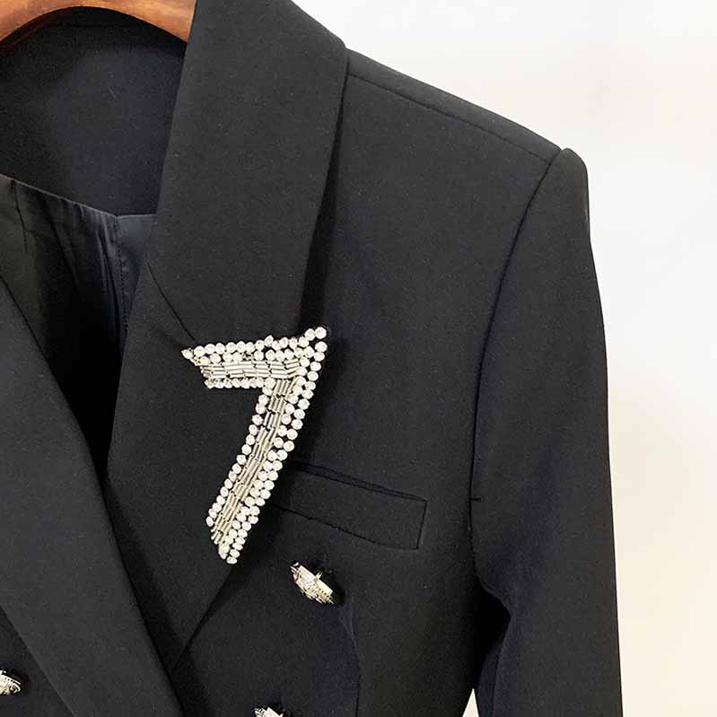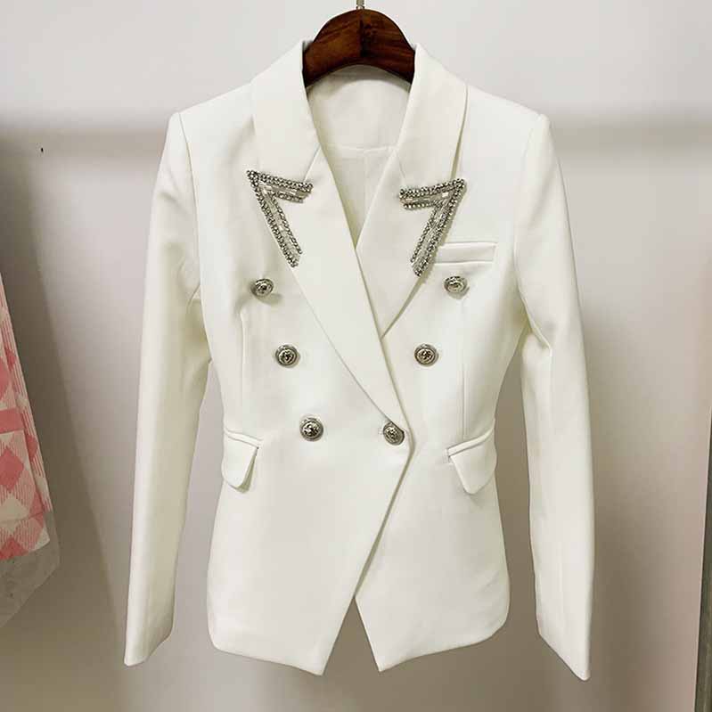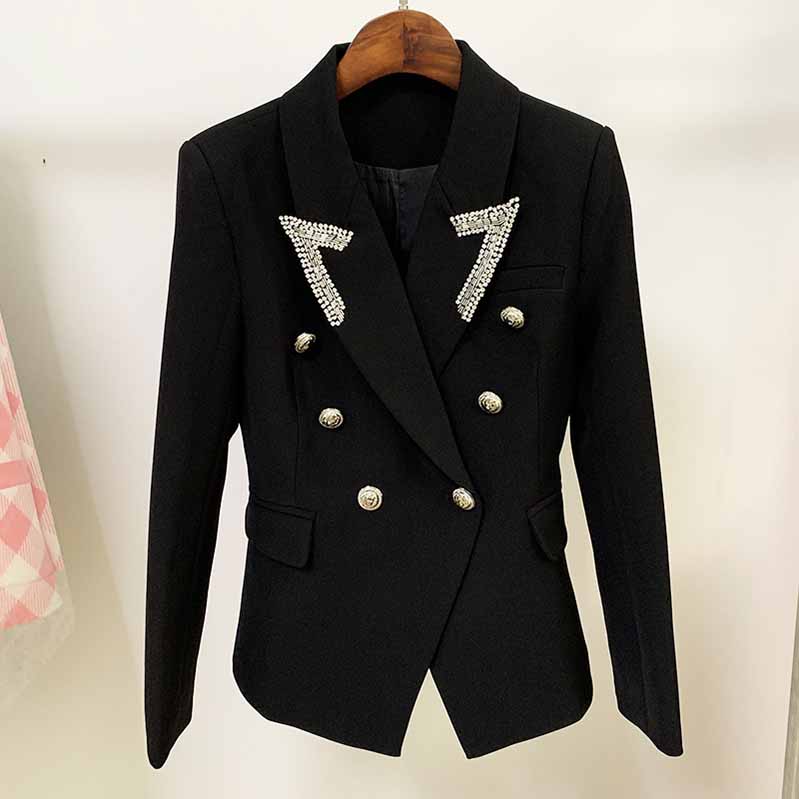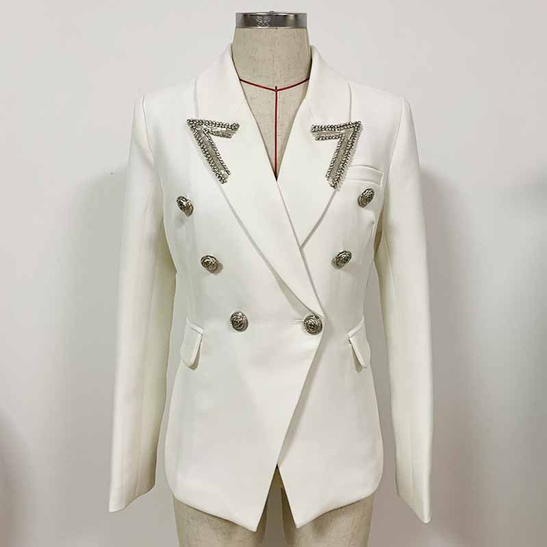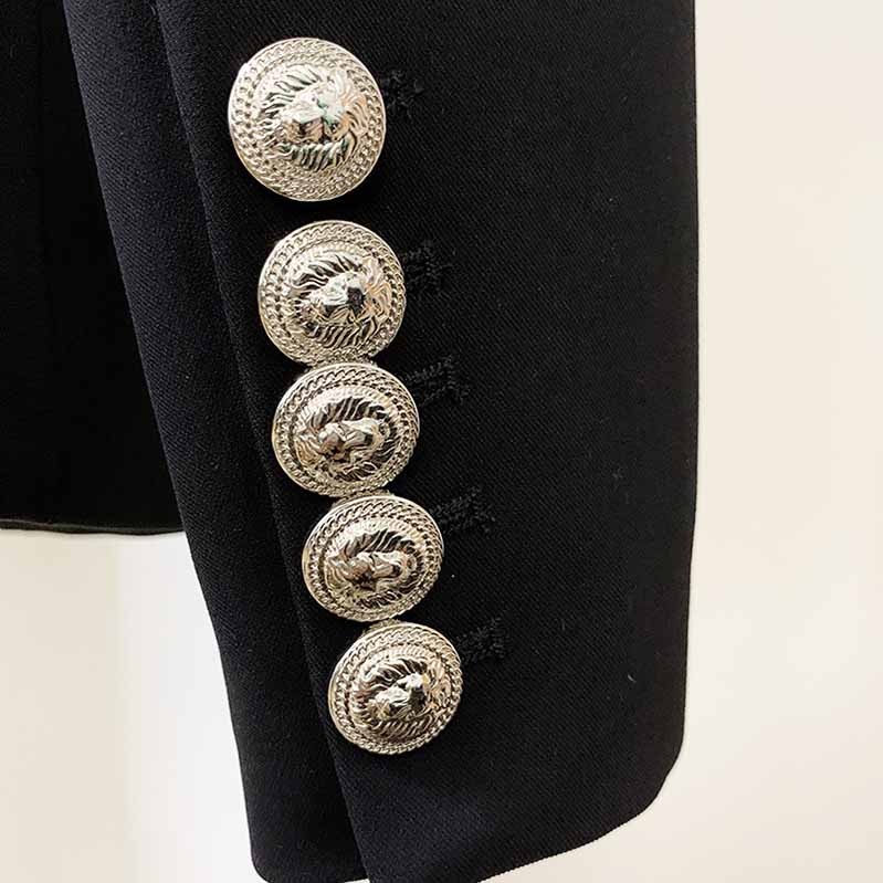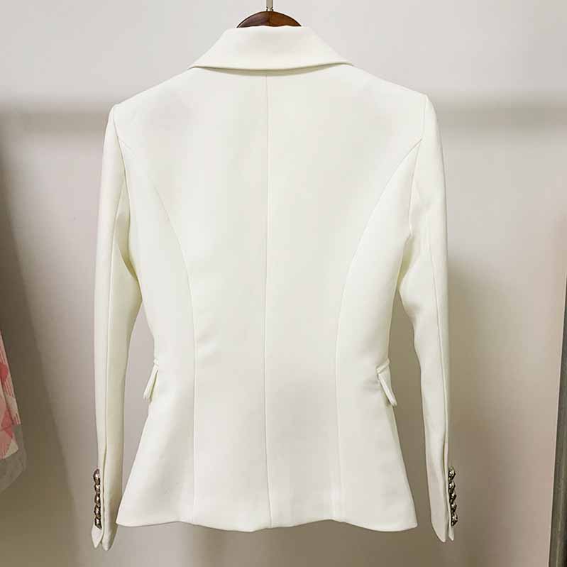 Womens Coat Double Breasted Lion Button Blazer with Metal Outwear