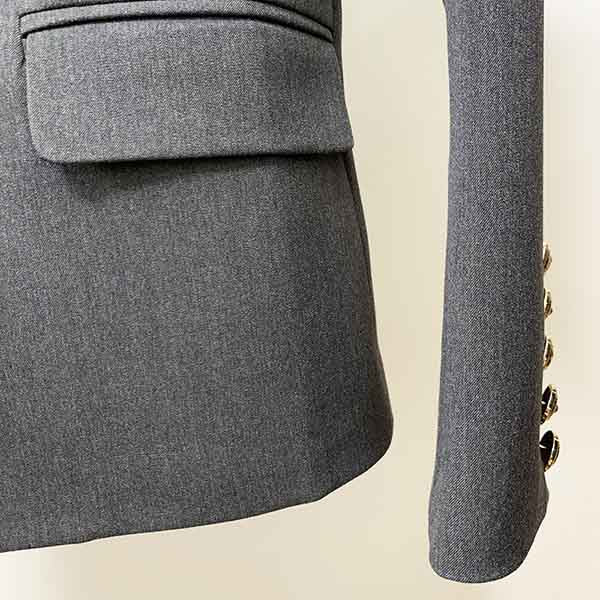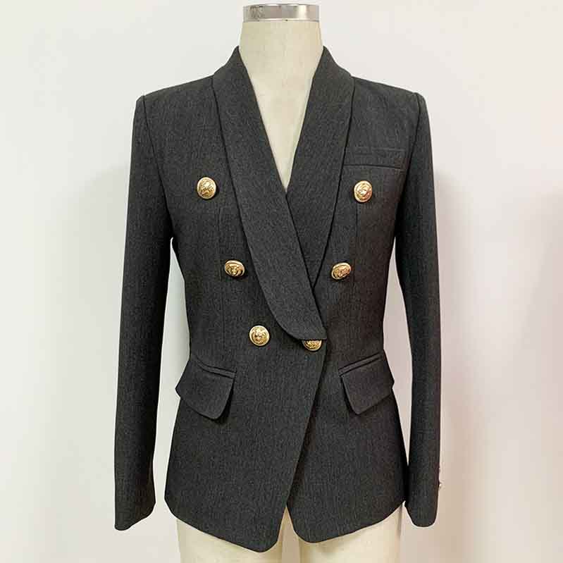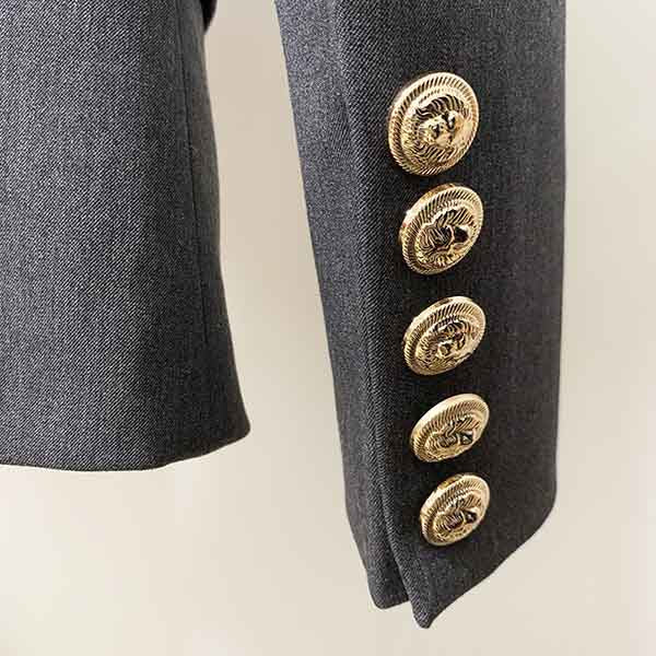 Women's Dark Grey Coat Golden Lion Buttons Shawl Collar Fitted Blazer Jacke