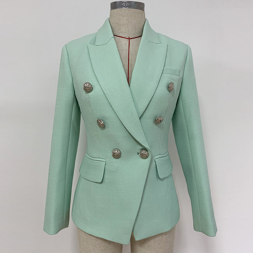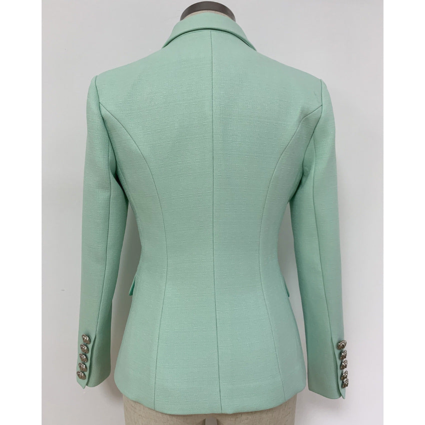 Women's Fitted Silver Lion Buttons Fitted Jacket Mint Green Blazer