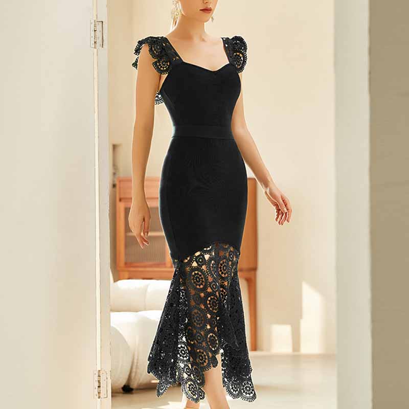 Women's Ruched Neck Fishtail Bandage Bodycon Dress Wedding Guest Party Dress