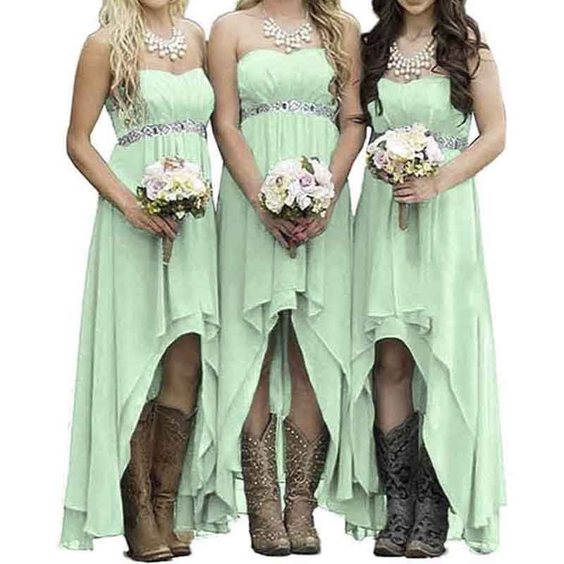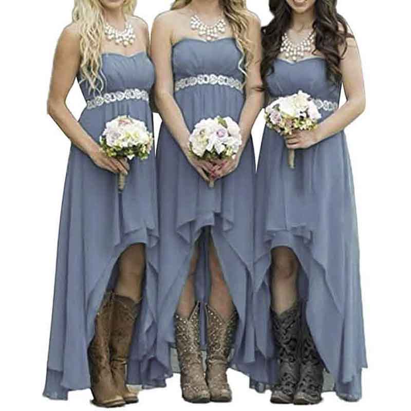 Women's Strapless High Low Bridesmaid Dresses Wedding Party Gowns