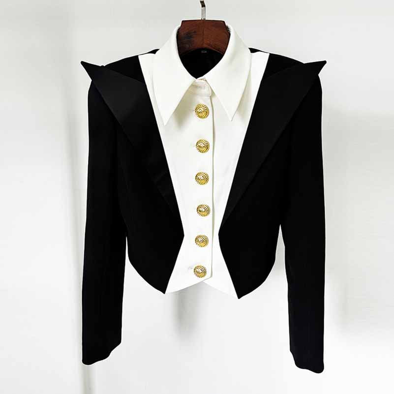 Womne's Crop Jacket 6 Button Black White Blazer