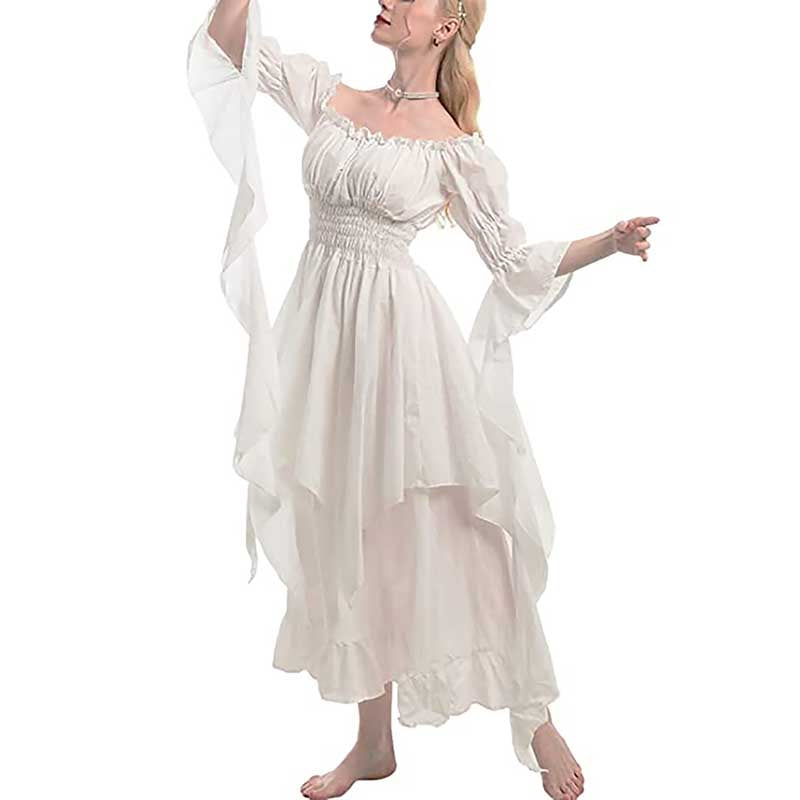 Style: Half-Sleeves, Midi Length, Off Shoulder, Elastic Waist, Comfortable, Vintage Masquerade Party Dress