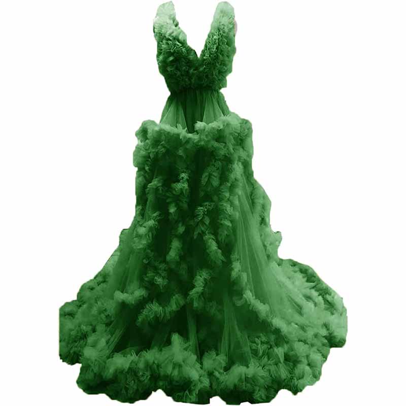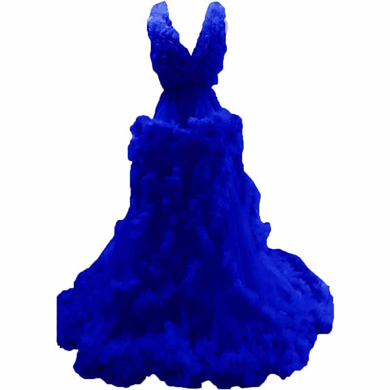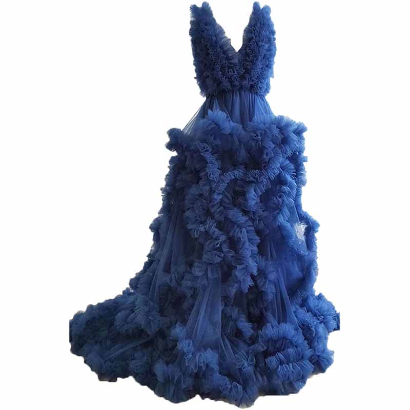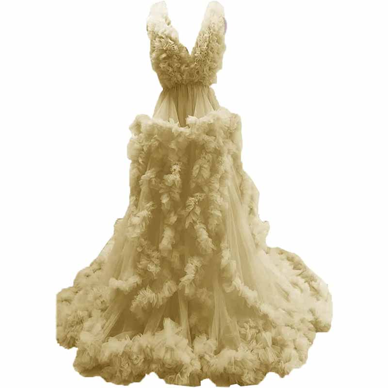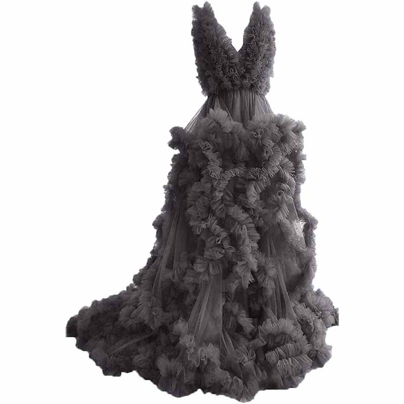 Ladies Gown Sheer Long Robe Puffy Tulle Robe Maxi Pregnancy Dresses