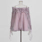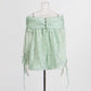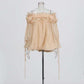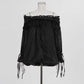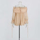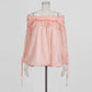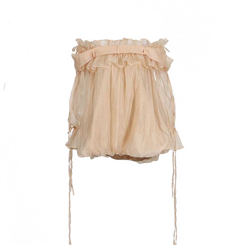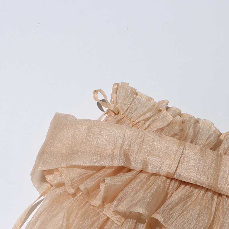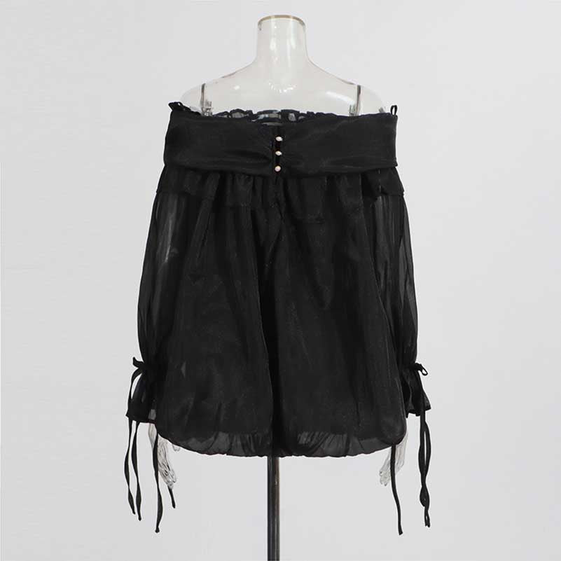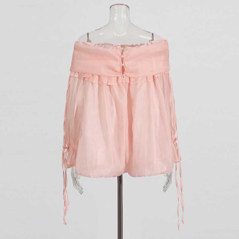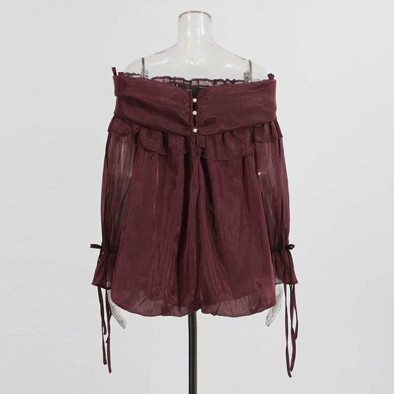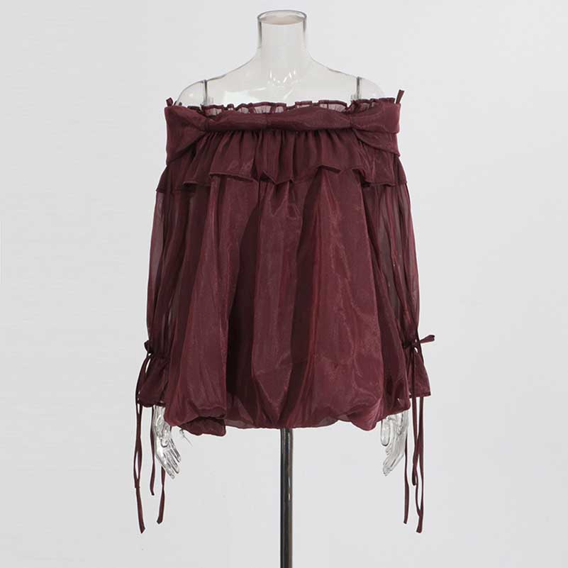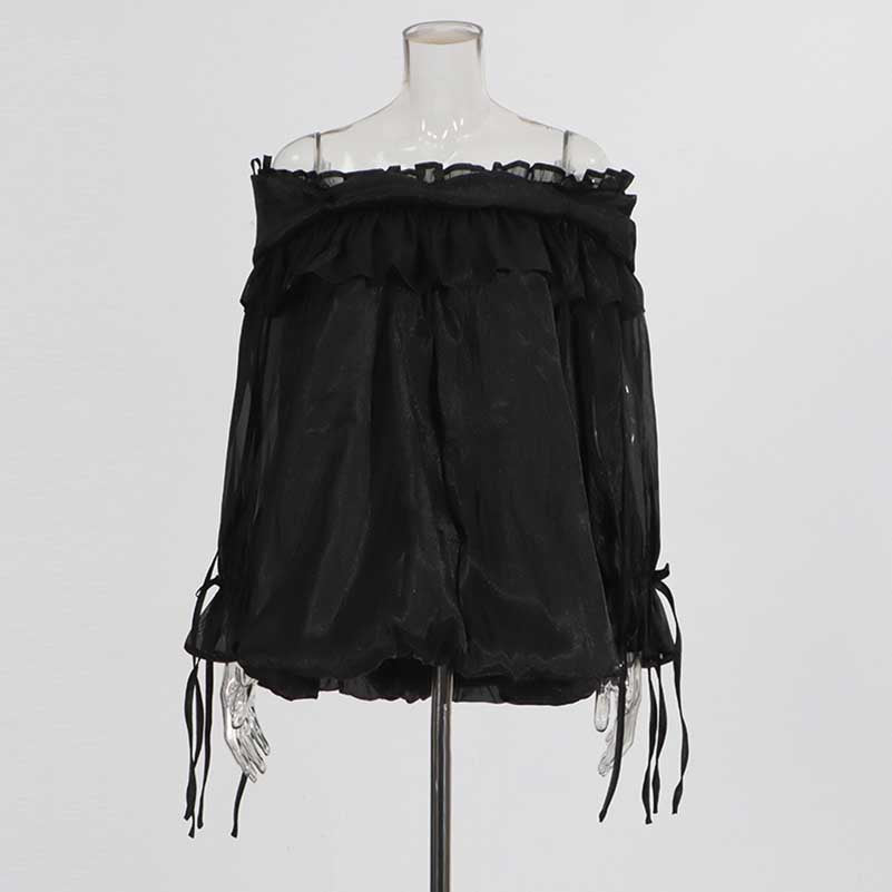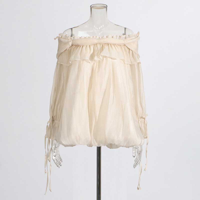 Long Ruffle Sleeves Lace-Up Tulle Shirt Formal Top