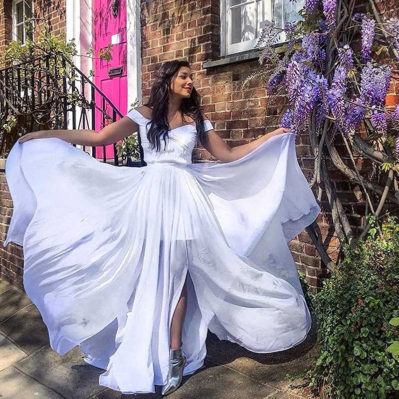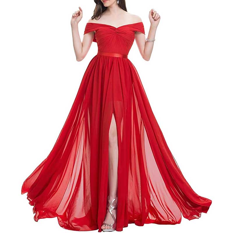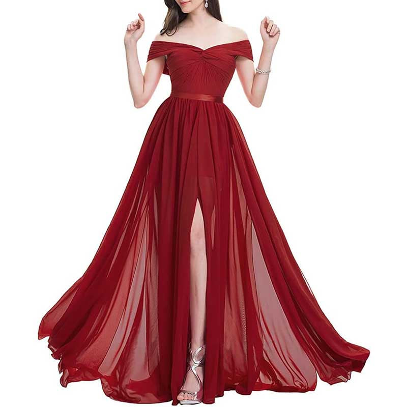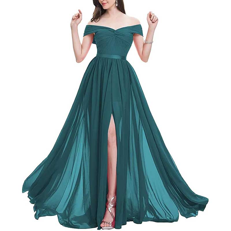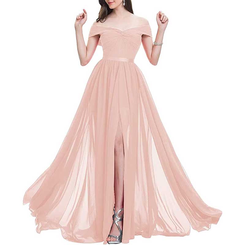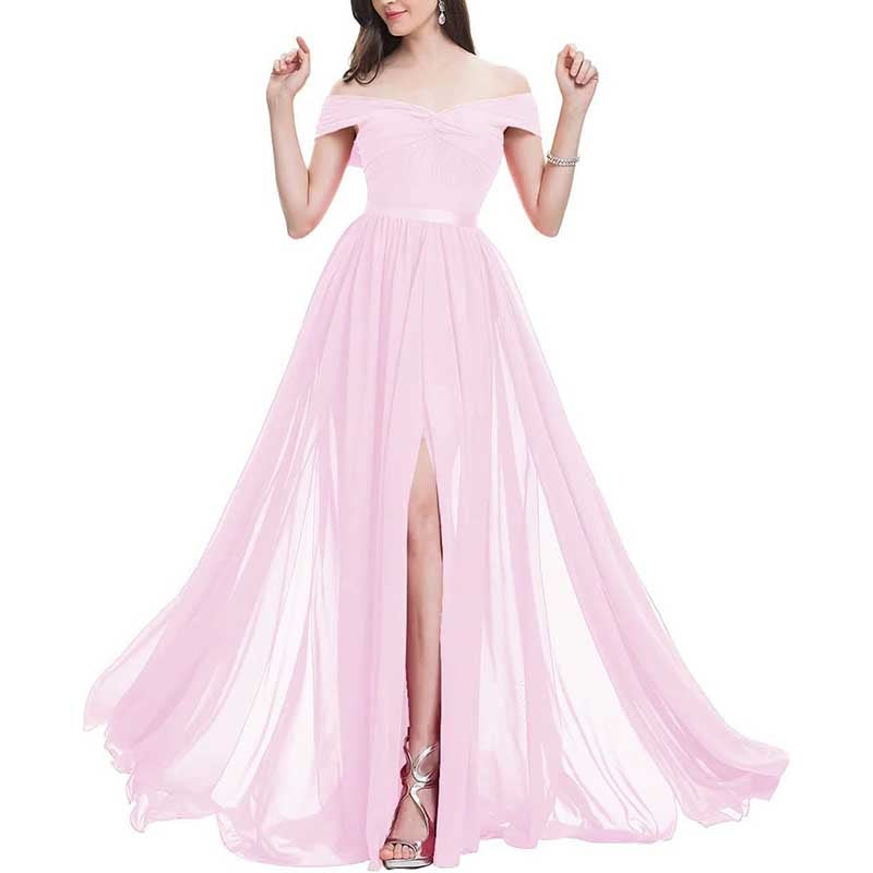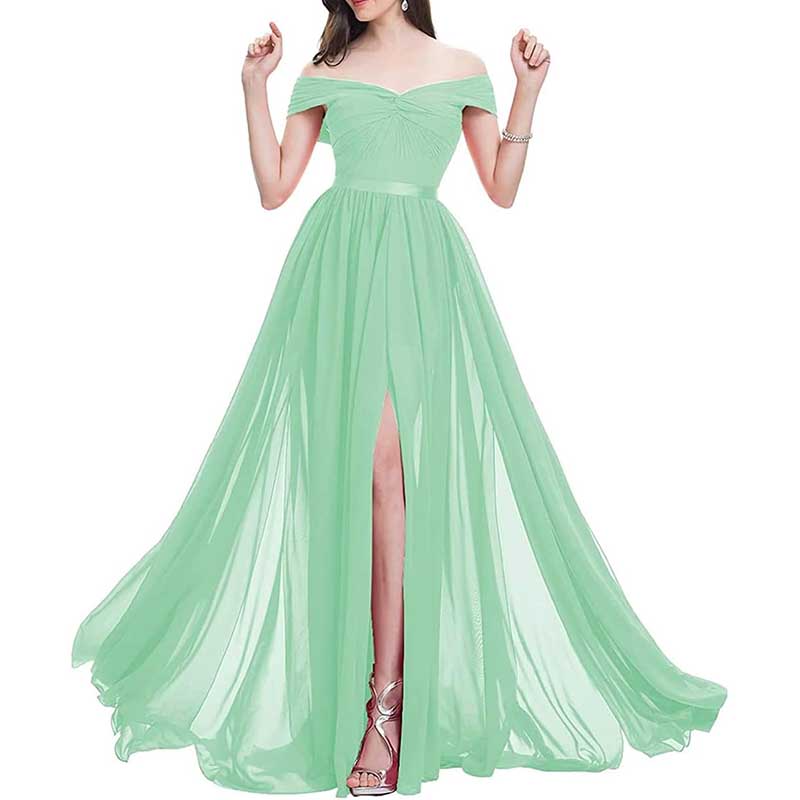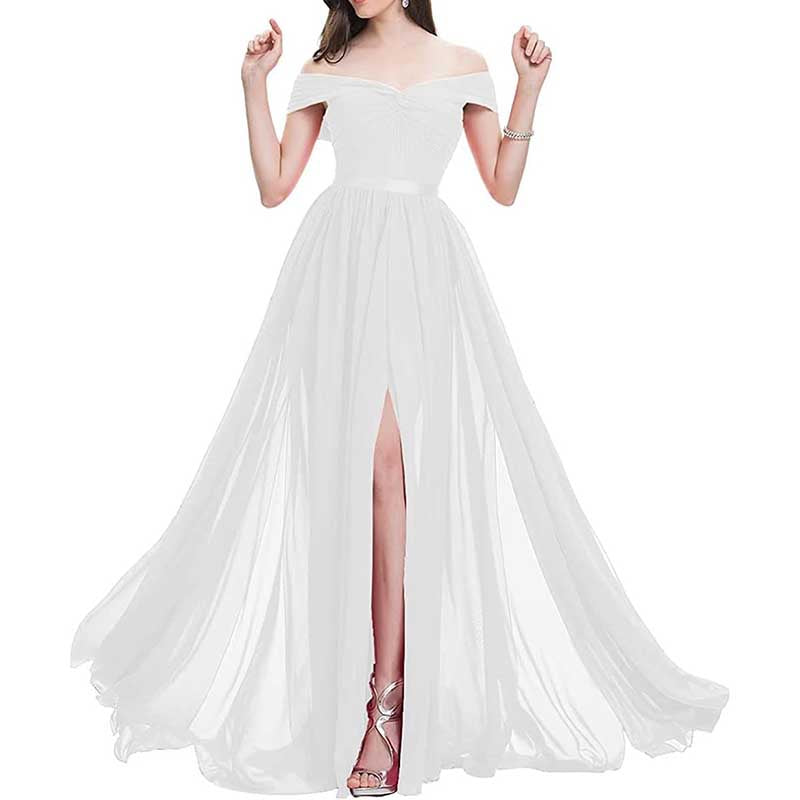 Off Shoulder Bridesmaid Dresses A-line Pleated Chiffon Formal Evening Gowns