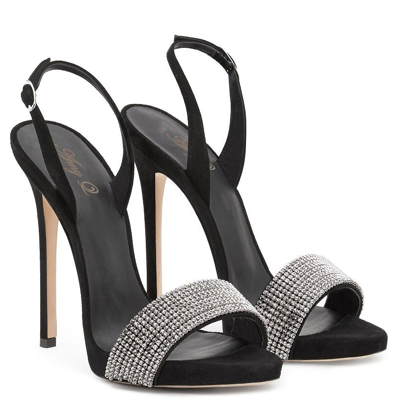 Tucomosi Women Slingbacks Pointed Toe Stiletto Sandals With Crystal