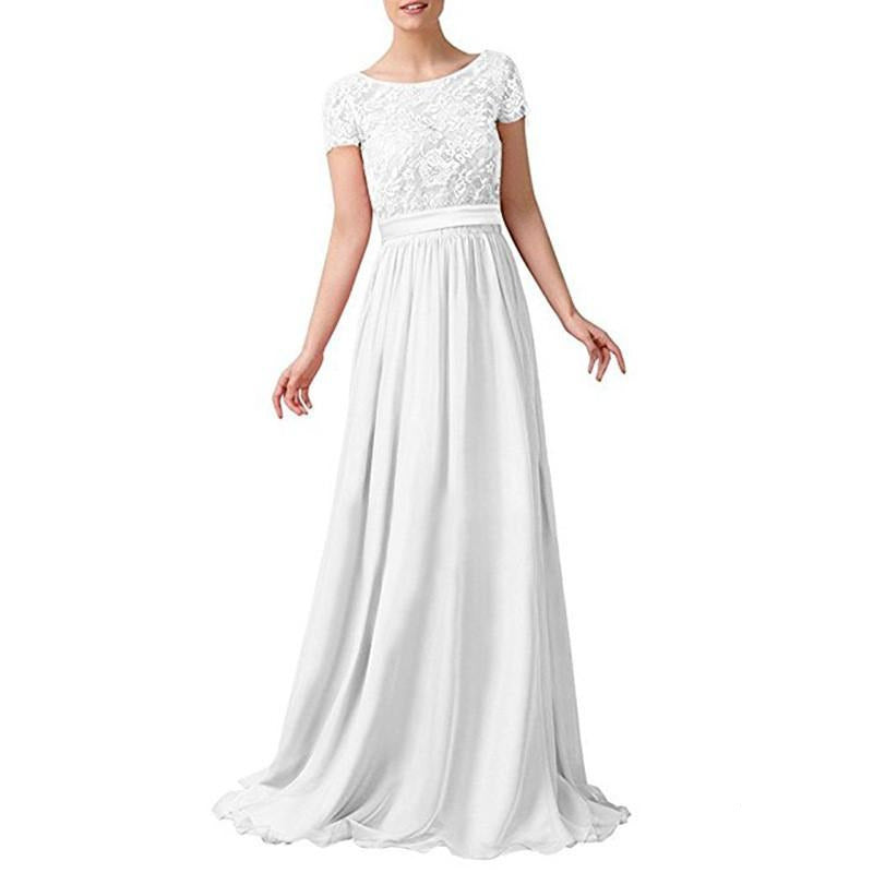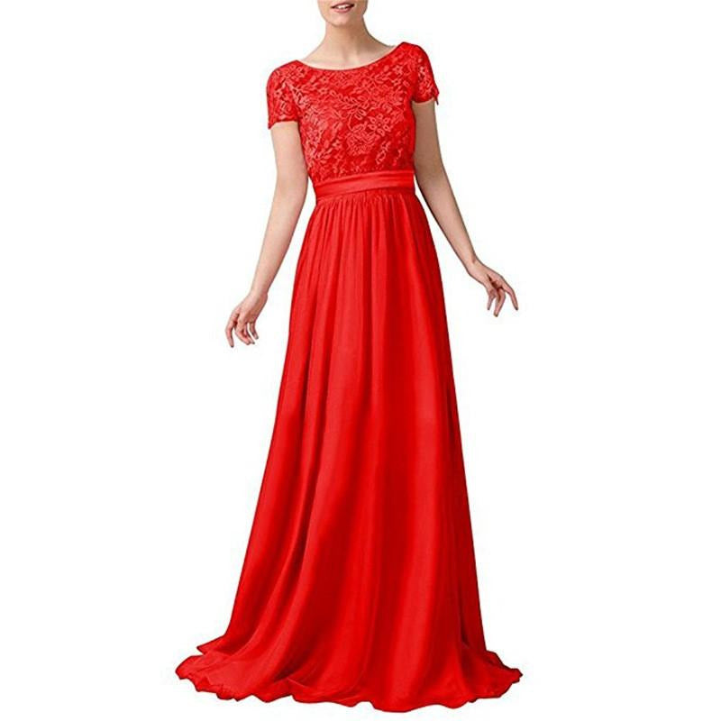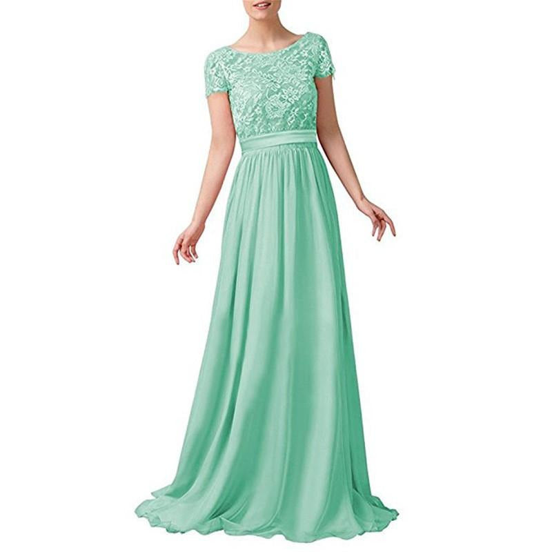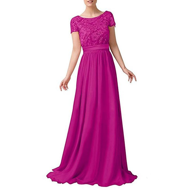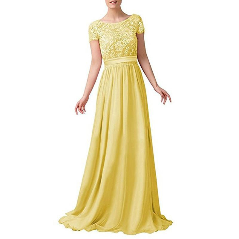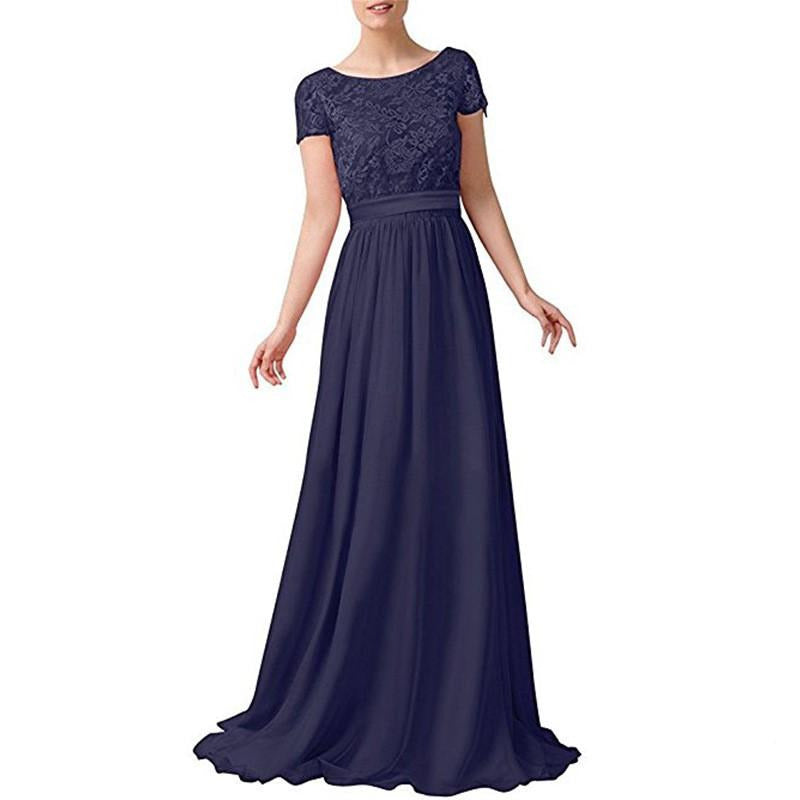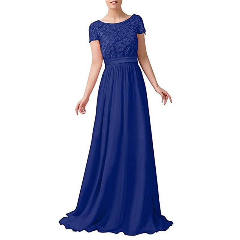 Long Prom Dress Evening Maxi Dress Short Sleeve Long Bridesmaid Gowns