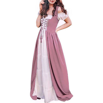 Style: Short Sleeves, Floor Length, Off Shoulder, Elastic Waist, Comfortable, Medieval Long Dress for Women, Vintage Masquerade Party Dress