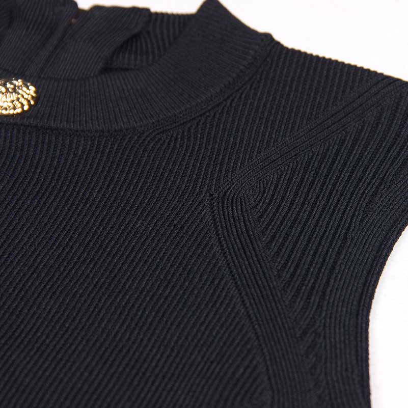 Sleveless Hollowed-Standard Collar Knit Midi Dresses