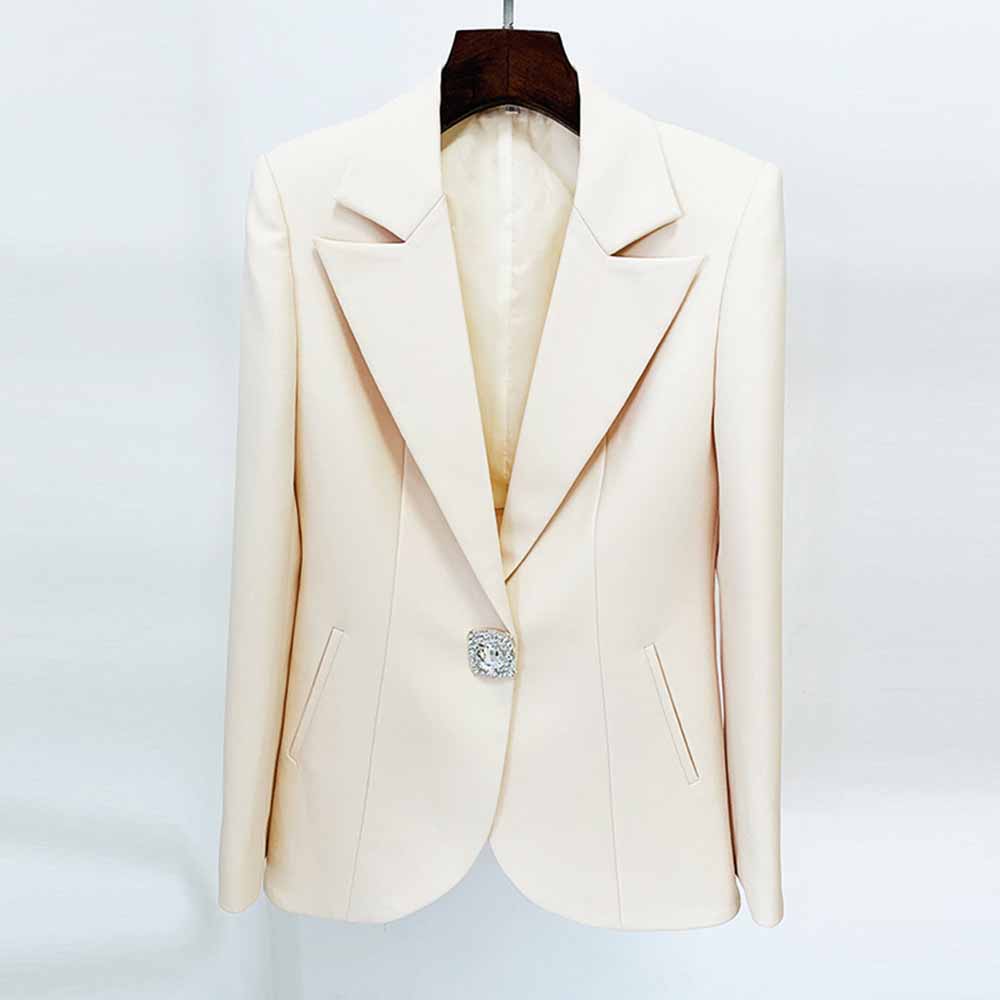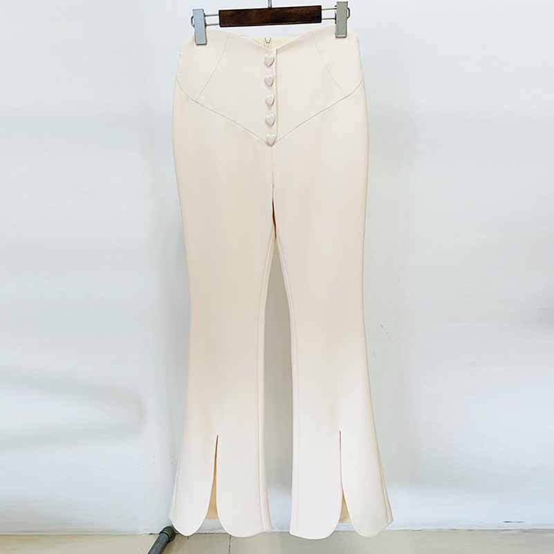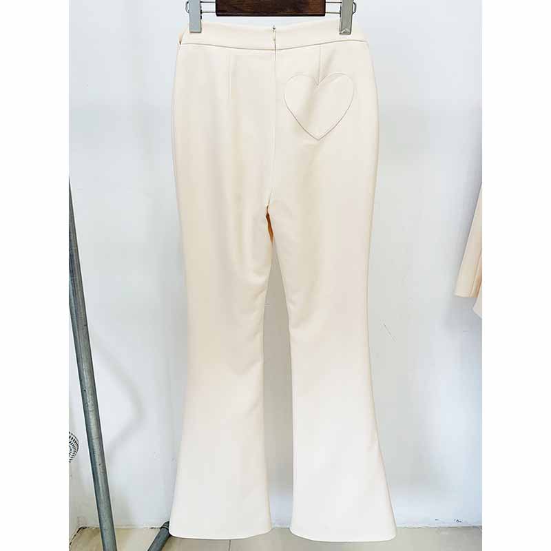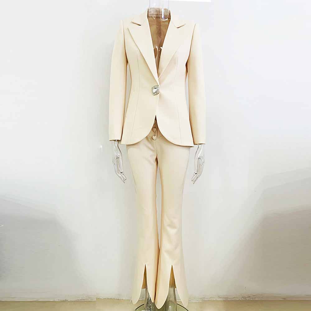 Women Invory Pantsuits One Button Flare Bottoms Two Pieces Pants Set