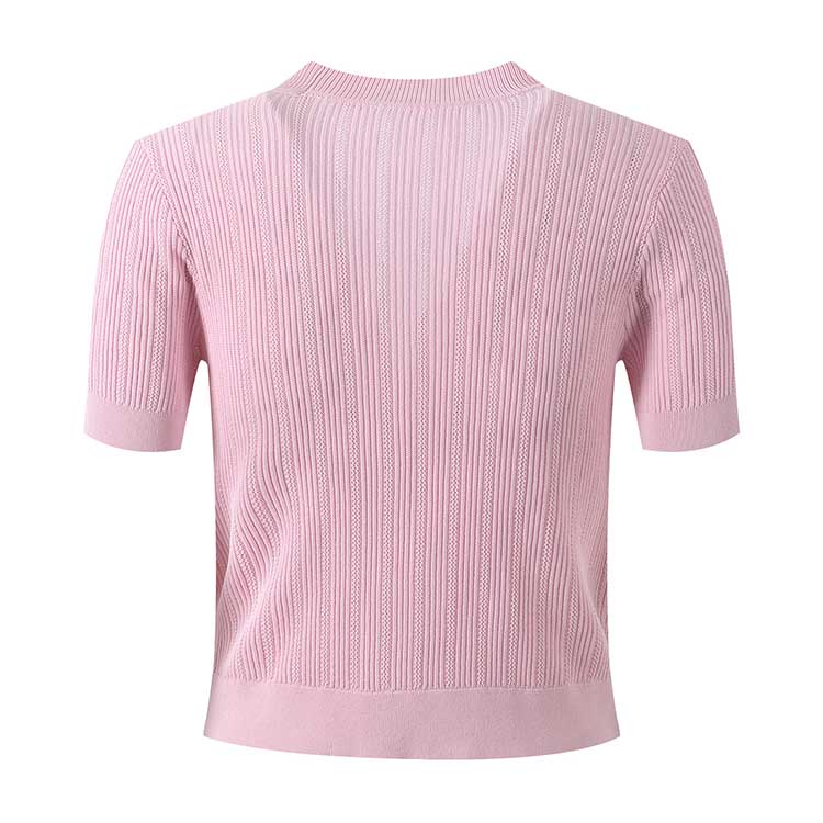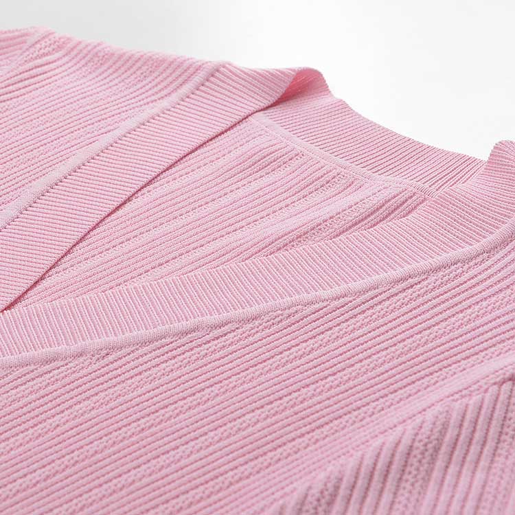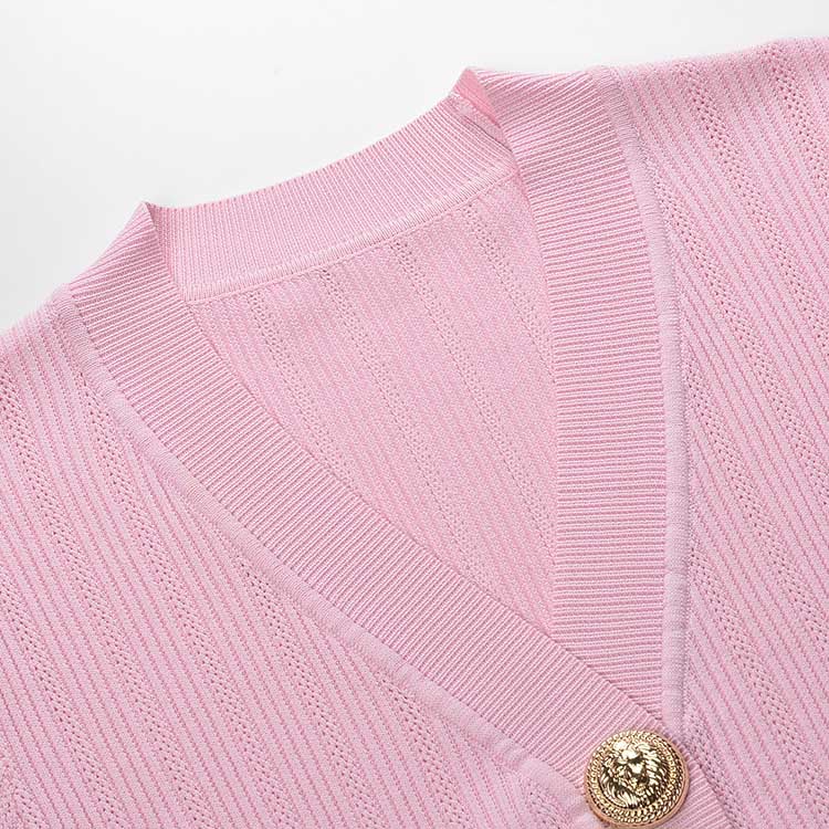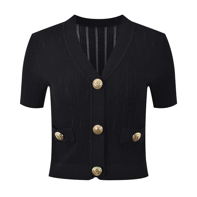 Women Knit Cardigan V-Neckline Cropped Top Short Sleeve Knitted Slim Coat