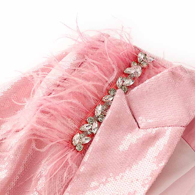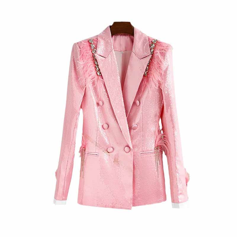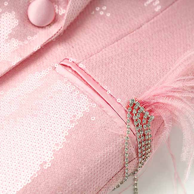 Women Sequin Blazer Pink Glitter Coat Party Jacket