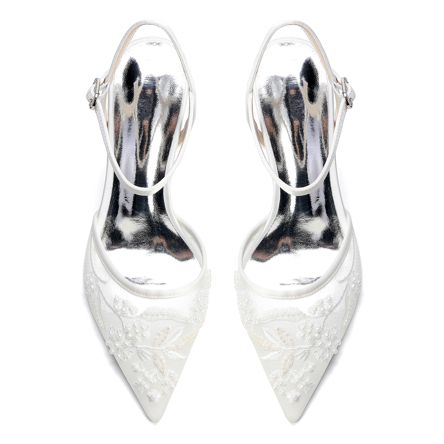 Women's Ankle-Strap Stilettos Lace Wedding Shoes 3.35"