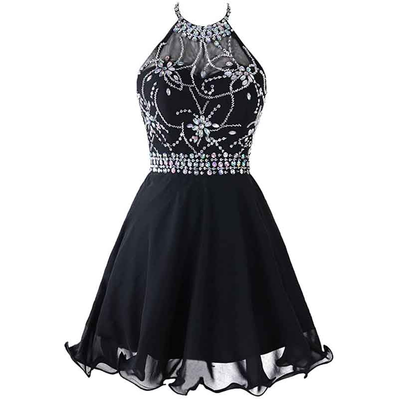 Women's Beaded Halter Homecoming Dress Short Tulle Prom Dress