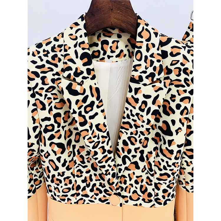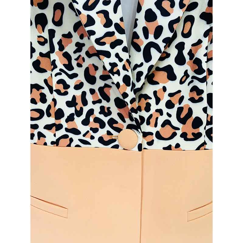 Feature: Style- Our Two Piece Pants suit is specialized with leopard print and contrast color style add a bit of nautical charm to this blazer,