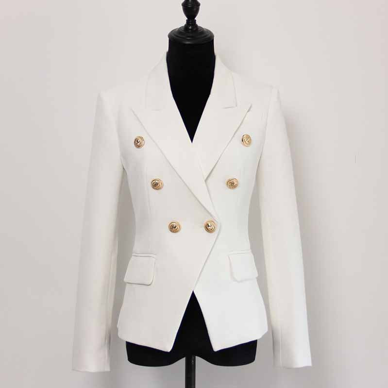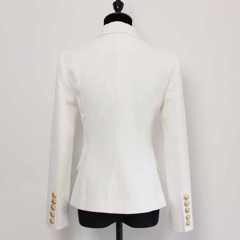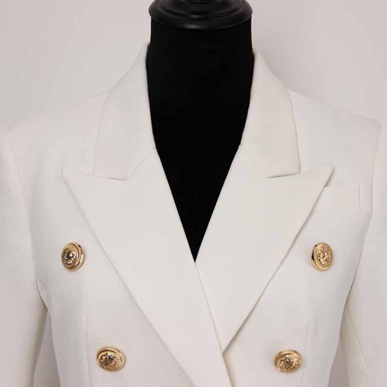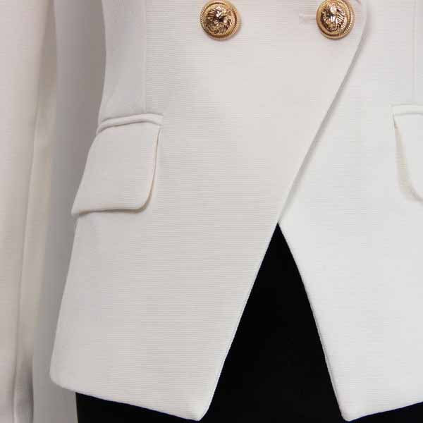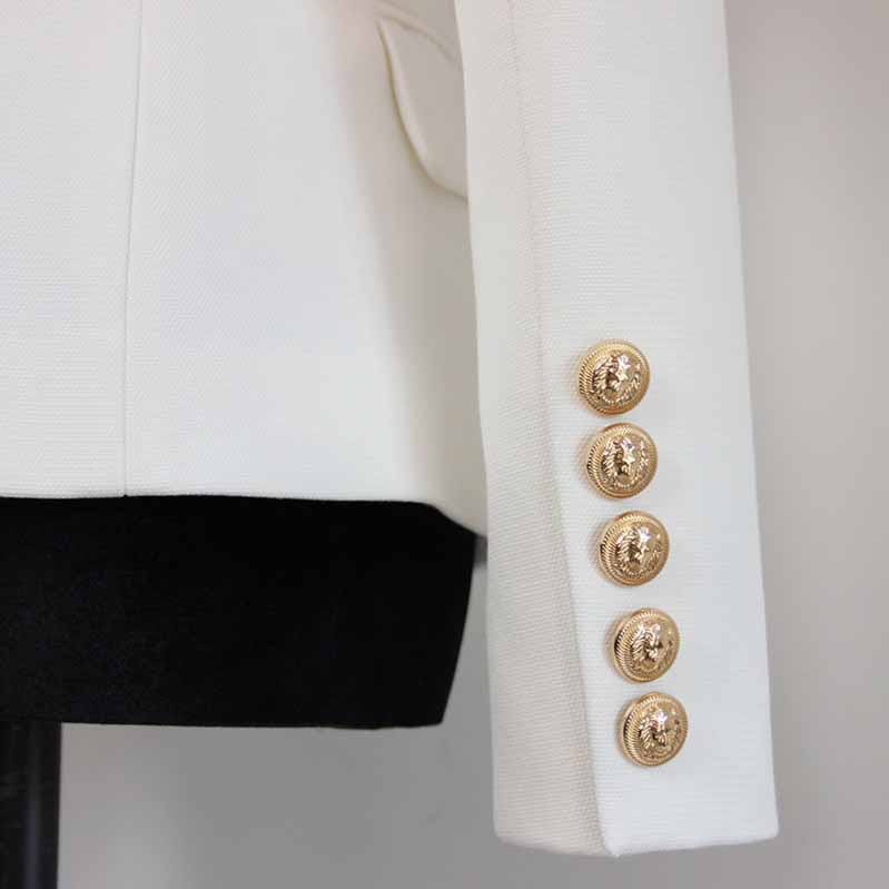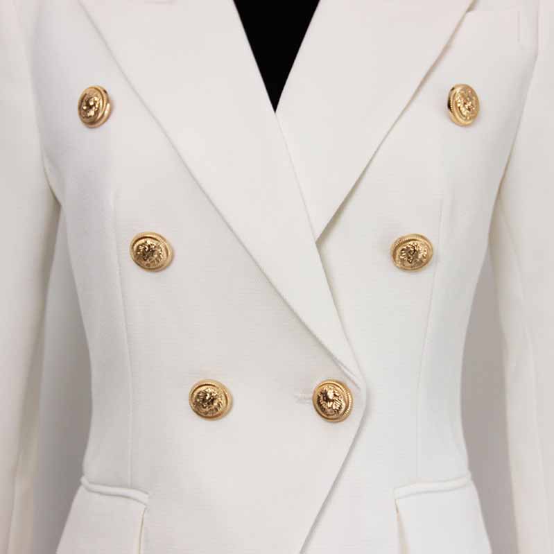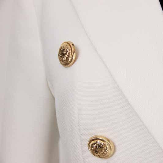Women's Luxury Fitted Blazer Golden Lion Buttons Coat White Color