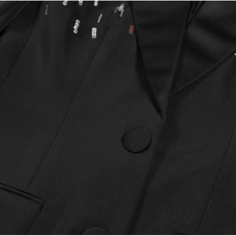 Black and White Sequin Blazer | Women's Mid-Length Coat