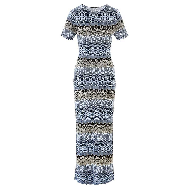 Women's Midi Stripe Dress Round-Neck Short Sleeves Knitted Body-con Dress