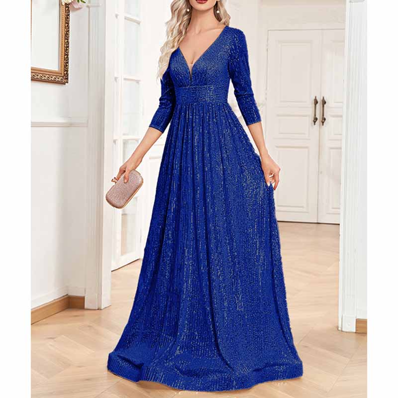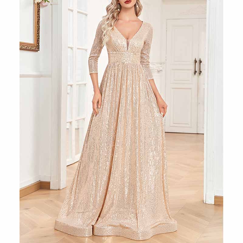 Women's Plus Size Long Sleeve Sequin Maxi Evening Dresses
