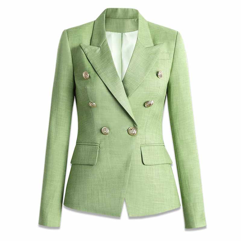 Women's Sage Green Textured Luxury Fitted Double Breasted Blazer with Lion Buttons - SLIM FIT