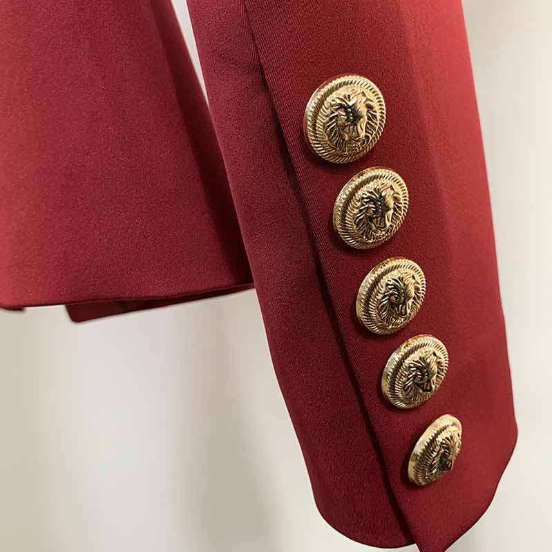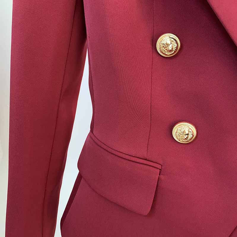 Womens Wine Red Jacket Coat Metal Lion Button Double Breasted Slim Blazer