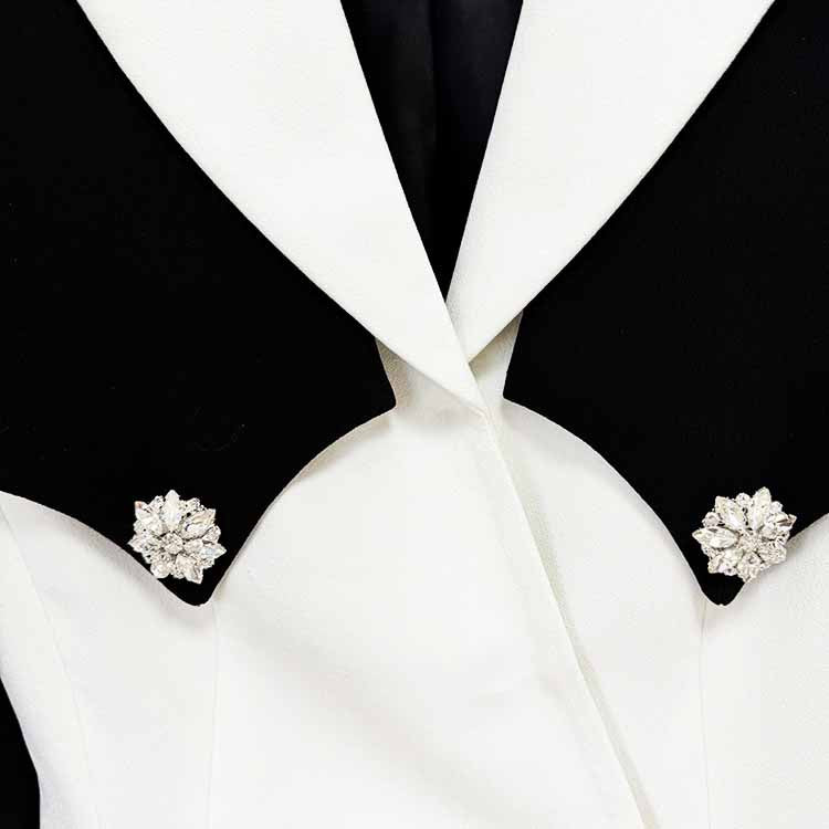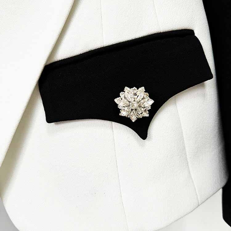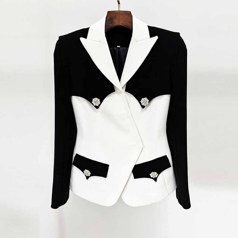 Womne's Black / White Jacket Two-Tone Pockets Blazer