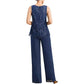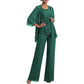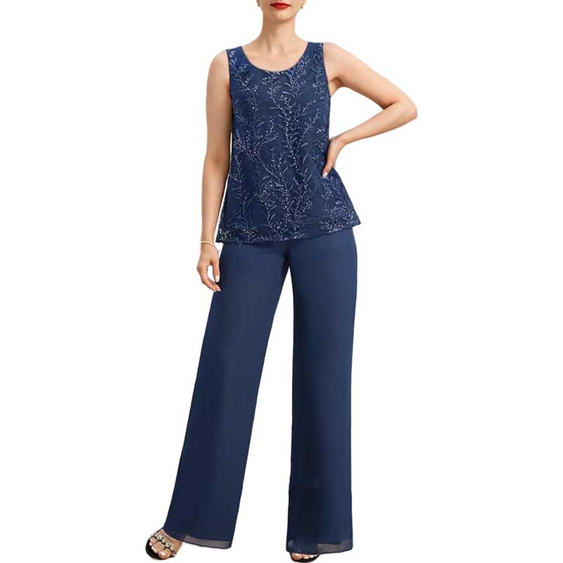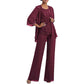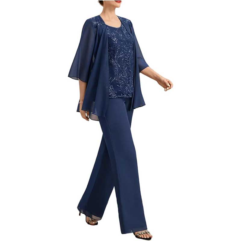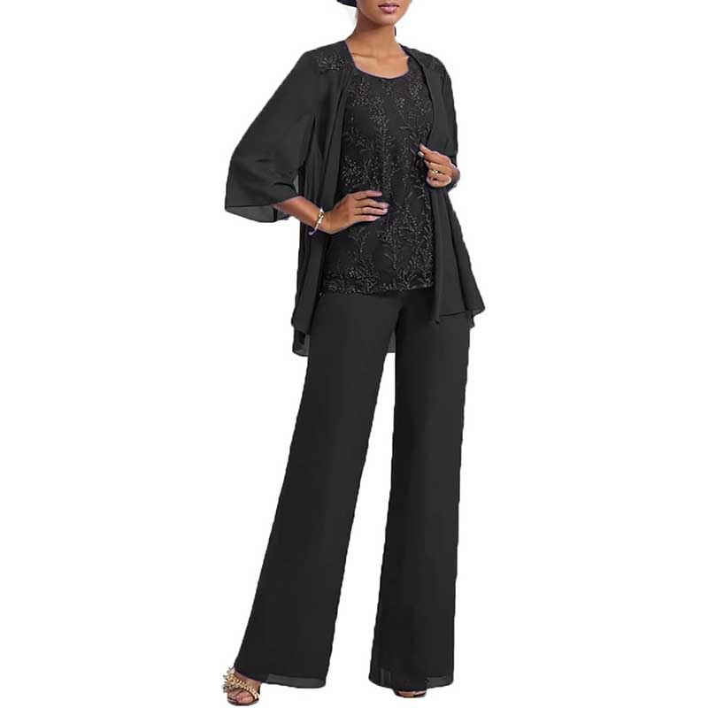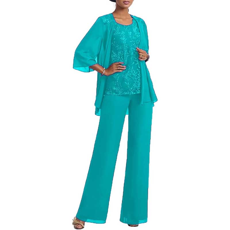 3 Pcs Mother of The Bride Pantsuits Jacketed Lace Applique Formal Pant Suit with Sleeves