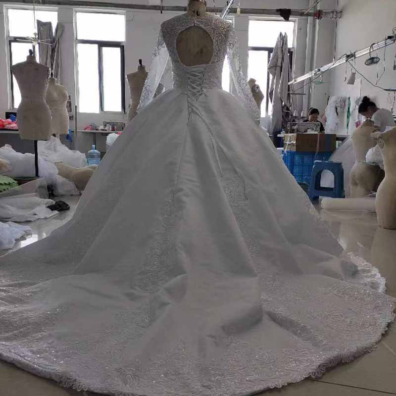 Ball Gown Lace High Neck Long Sleeves Chapel Train Wedding Dresses