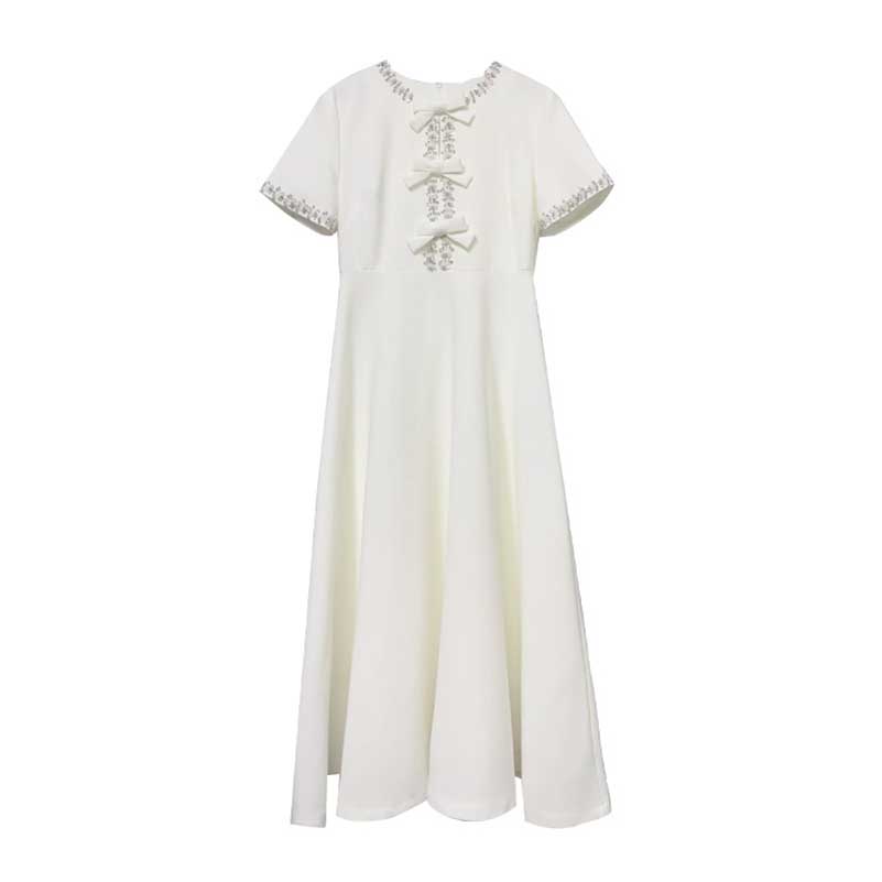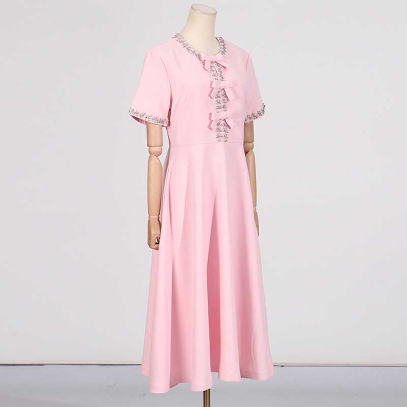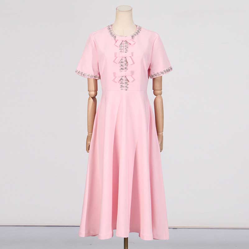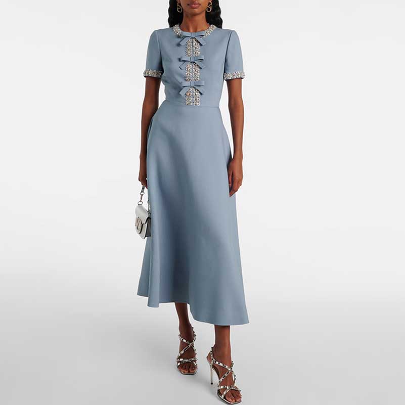 Bow-Detailed Crystal-Trim Midi Dress