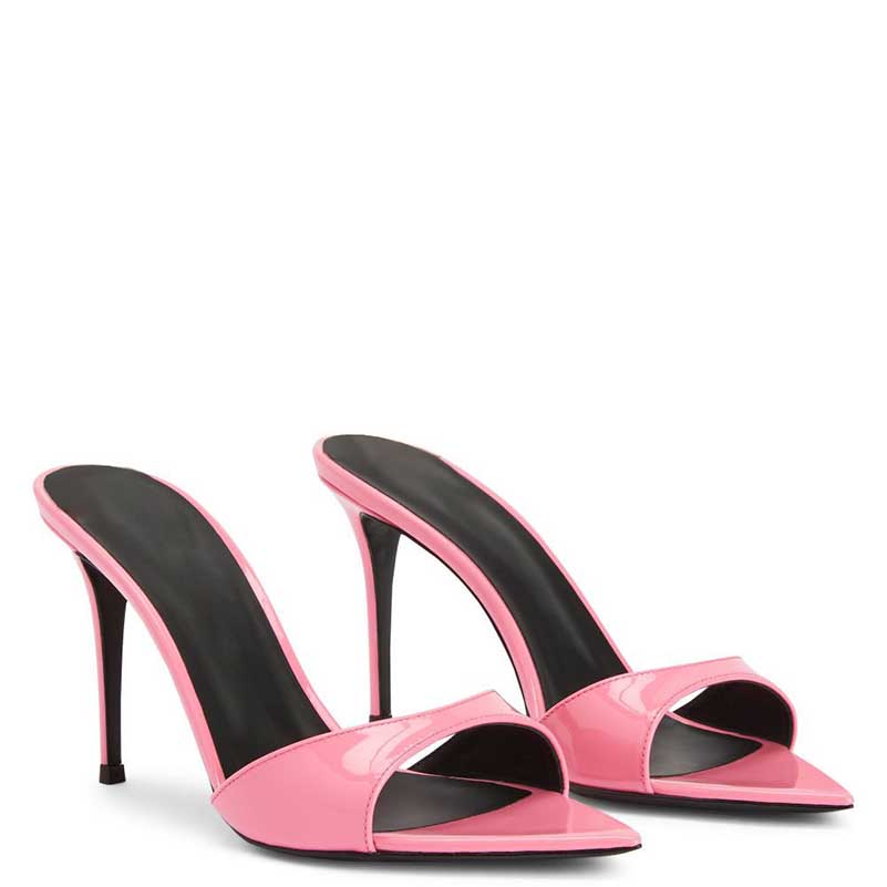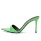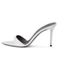 Womens High Heeled Mules Peep Toe Slip On Sandals
