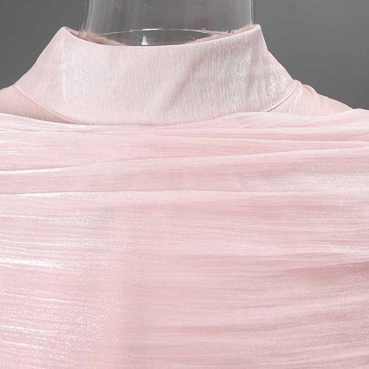 Product Type:  Women’s Long Pleated Pink Dress – Flared Sleeves, Ruffle Hem