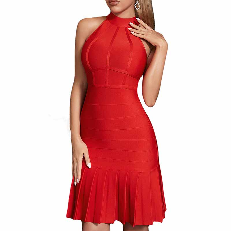 Halter Neck Sleeveless Ruched Backless Party Cocktail Mini Party Dresses
