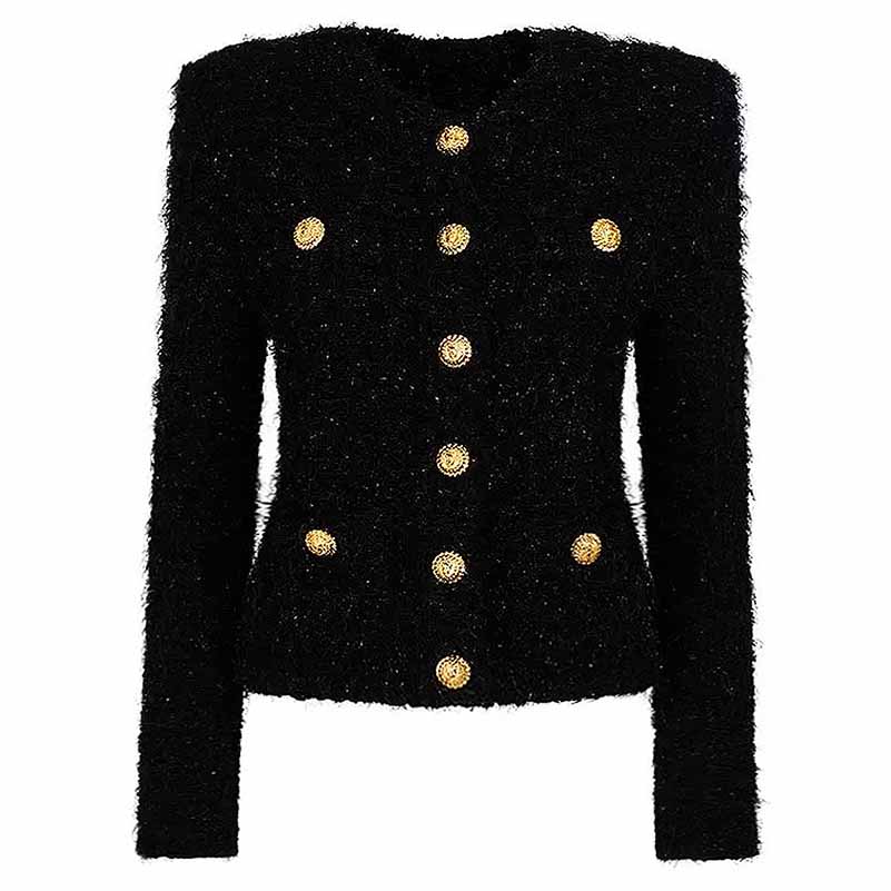 Knitted Buttons Tweed Jacket Cardigan Coat