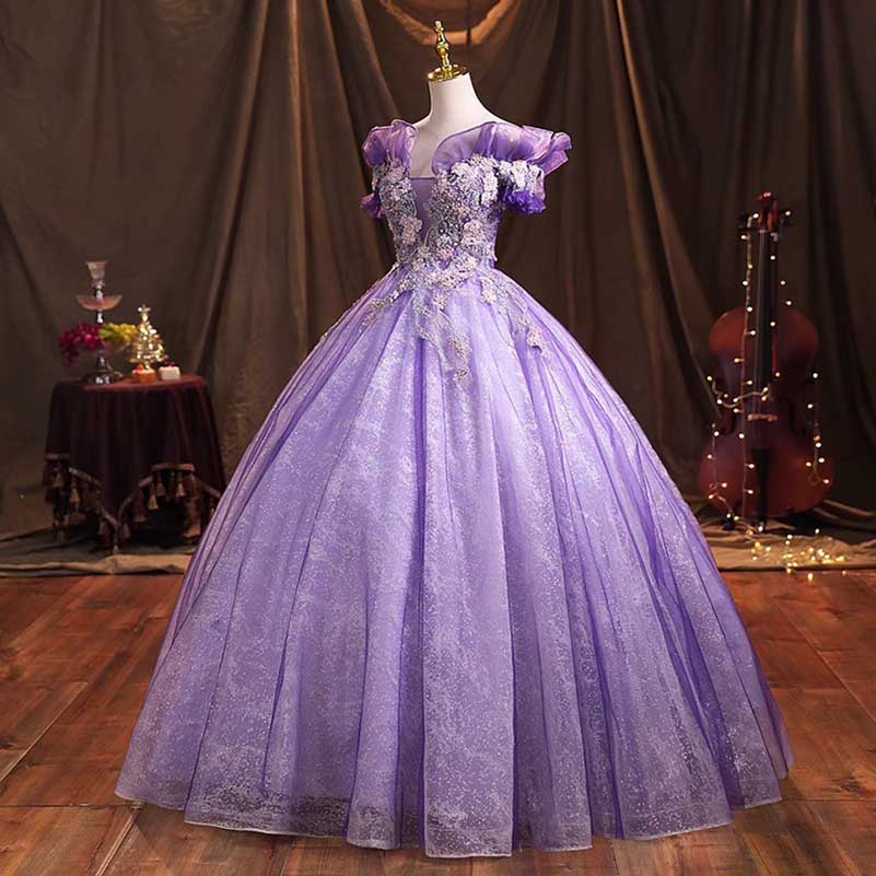 Lavender Sparkly Tulle Quinceanera Dresses Flower Appliques Ball Gown
