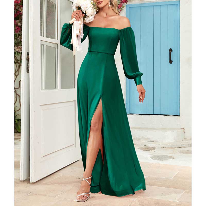 Long Prom Gown Off The Shoulder Evening Dress Chiffon Bridesmaid Dress