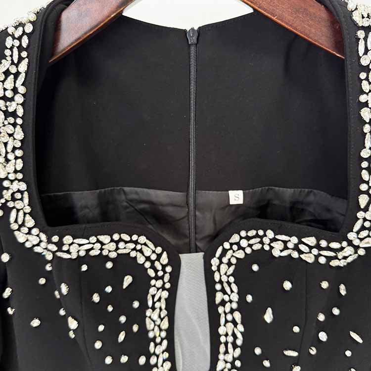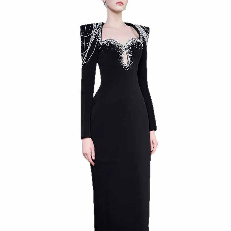 Long Sleeve Square Neck A-Line Prom Dress With Crystal