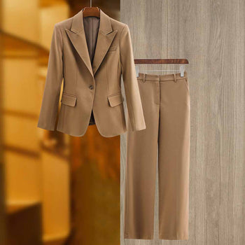One Button Borwn Pantsuit Fitted Blazer + Mid-High Rise Trousers Pantsuit Suit Formal Wear
