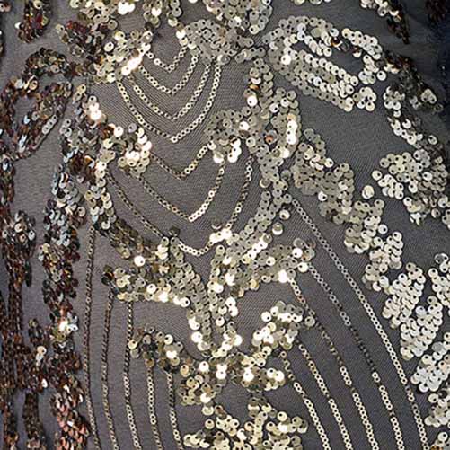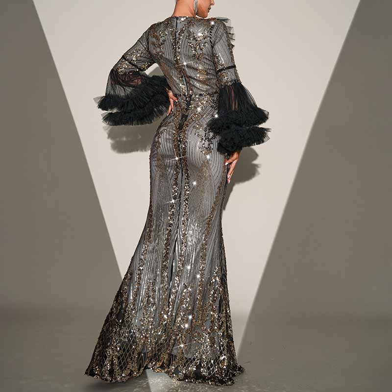 Puffed-Sleeve Sequined Long Evening Dress Mermaid Formal Gown
