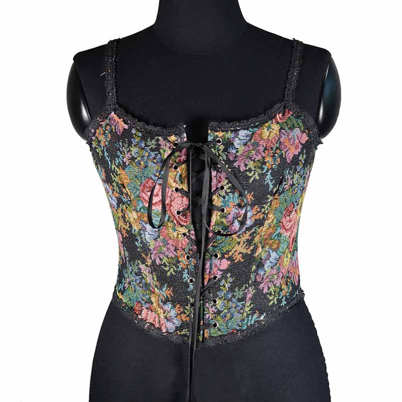 Women Lace up Floral Corset Top Push Up Vintage Tank Top