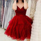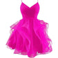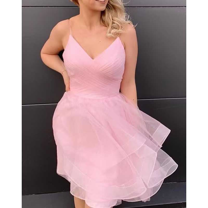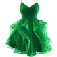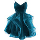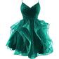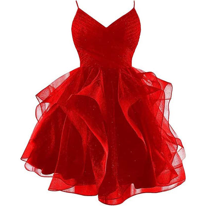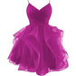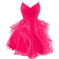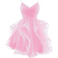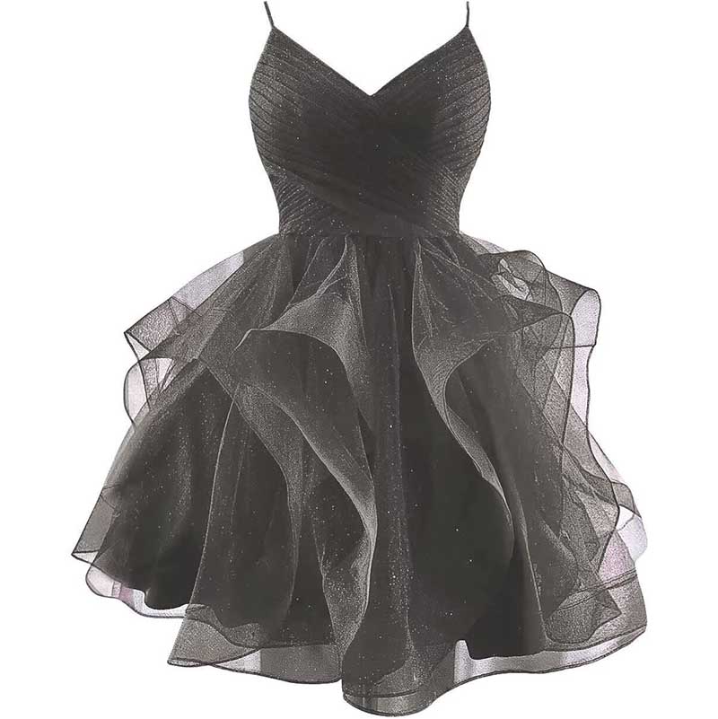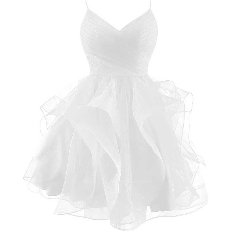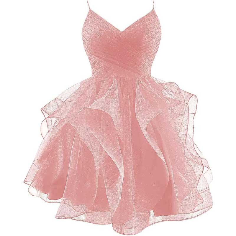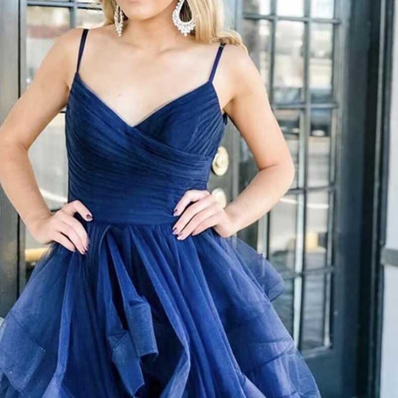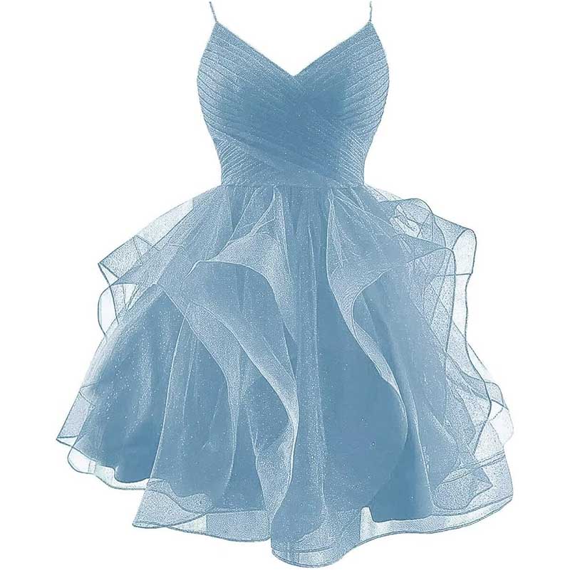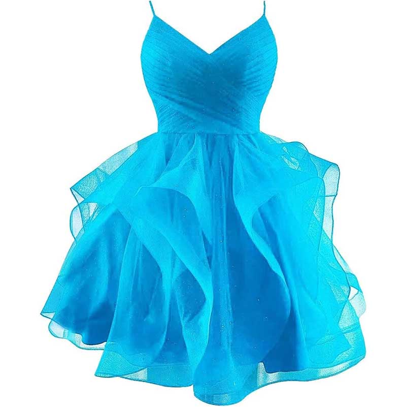 Short Prom Dress Tulle Spaghetti Straps Tiered Homecoming Dresses Teens Ball Gown