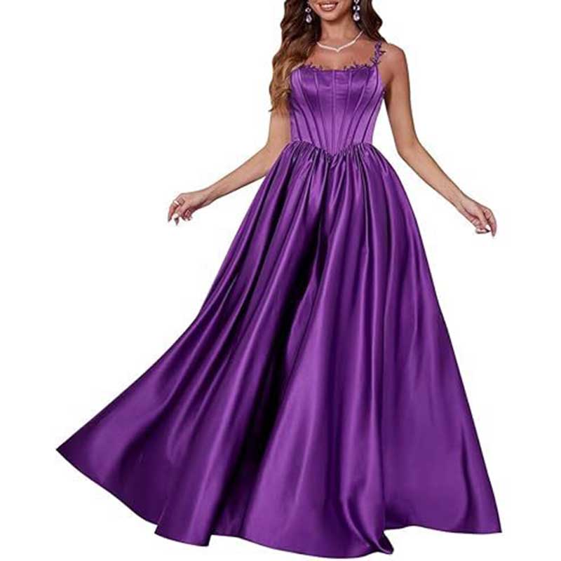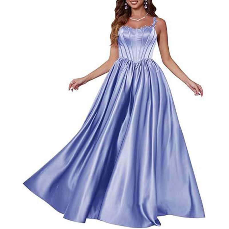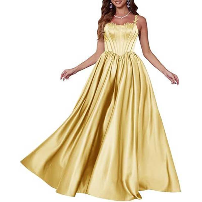 Spaghetti Straps Wedding Ball Gown Appliques Satin Prom Dress