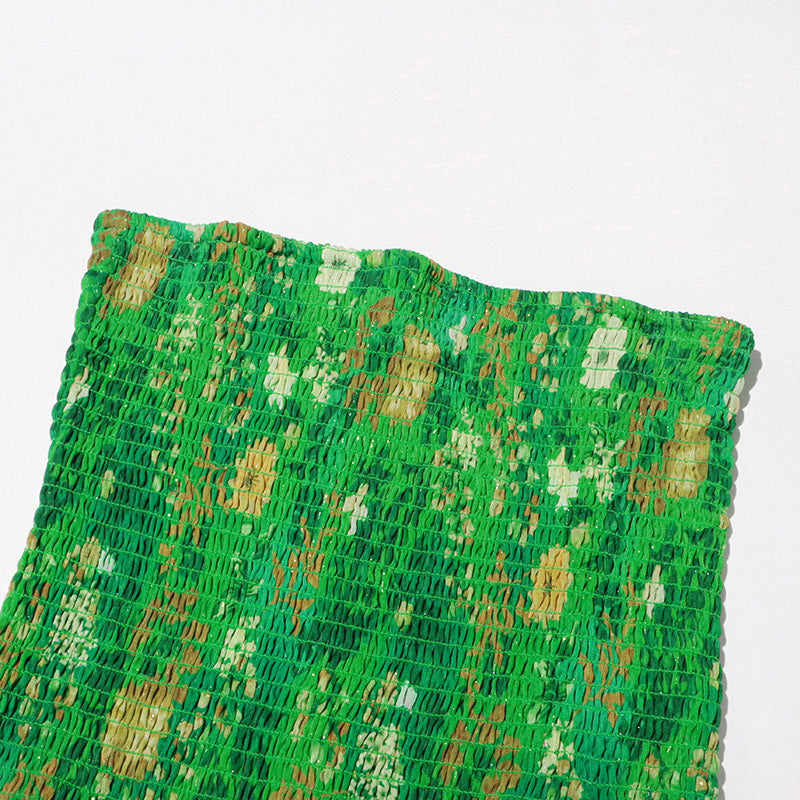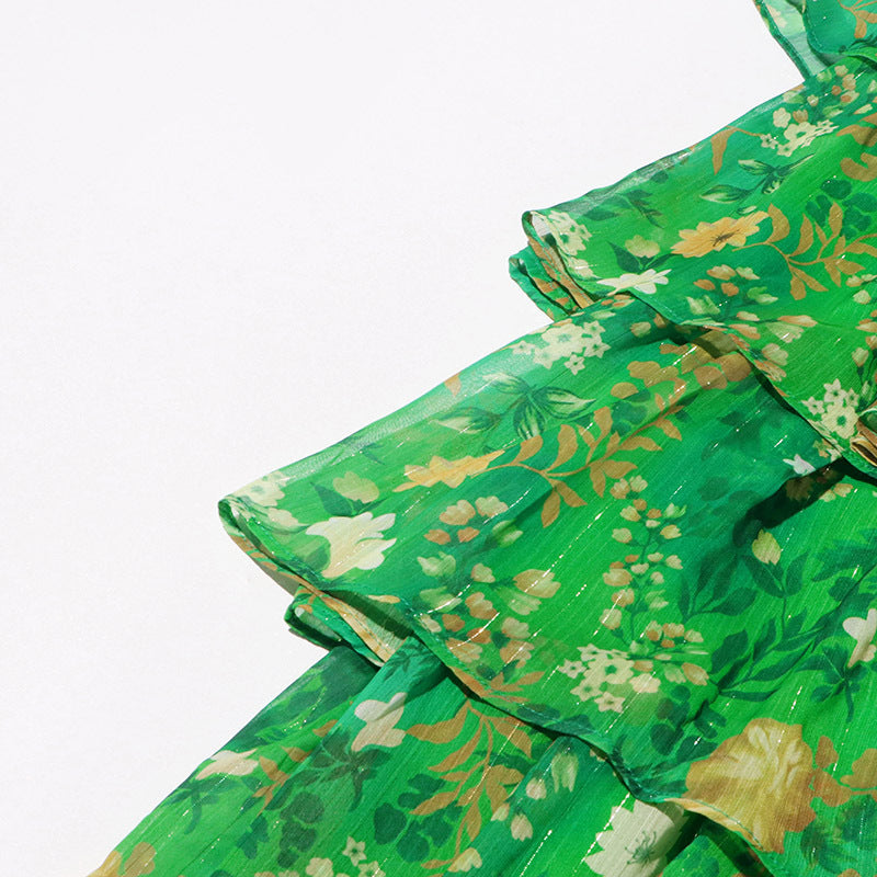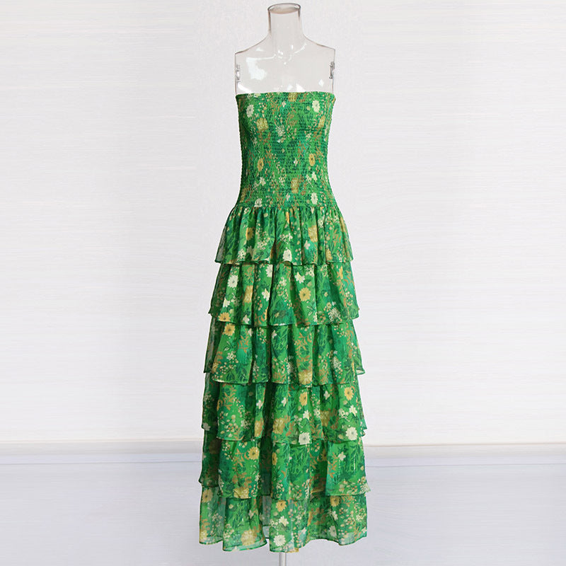 Strapless Layered Tiered Floral Print Dress Green Chic Dress
