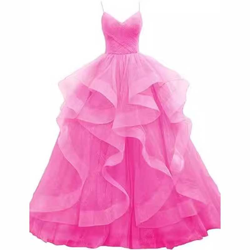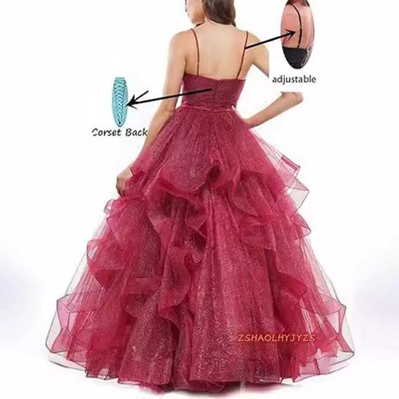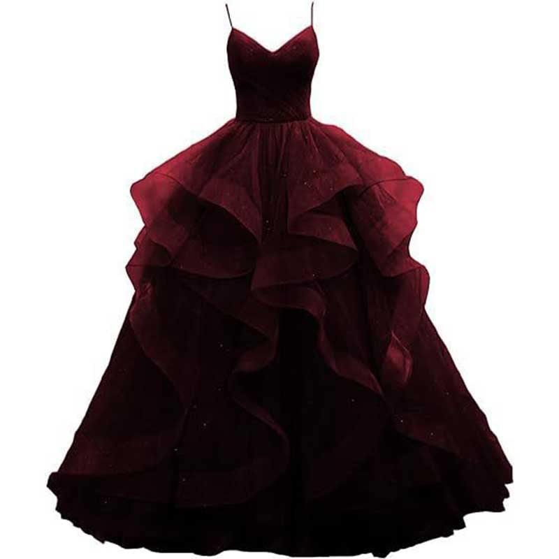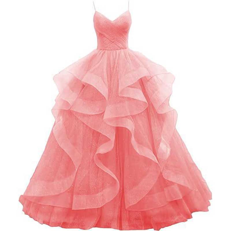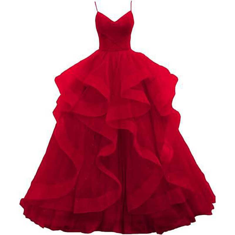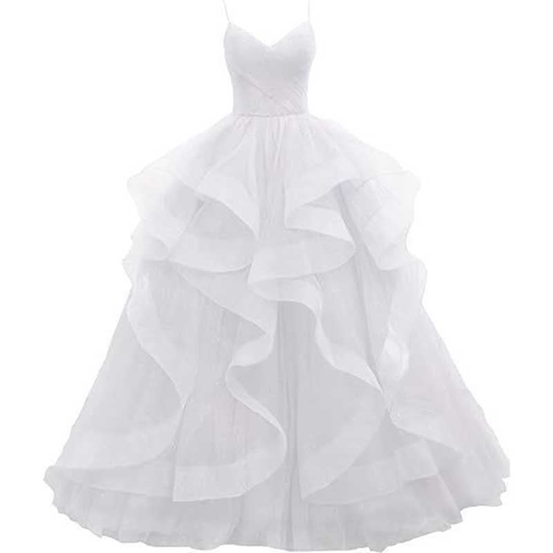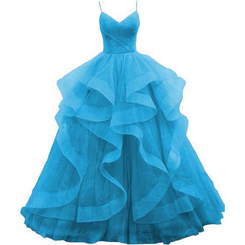 Tulle Prom Dresses Long Spaghetti Straps Wedding Ball Gown