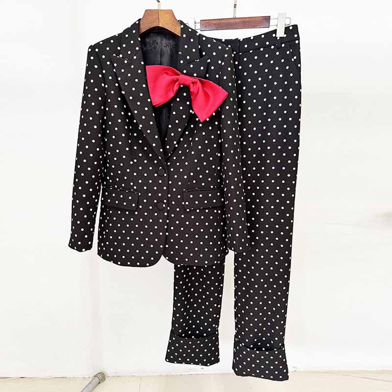 Wedding Suit Polka-dot Pantsuit With Bow Embellished Formal Set