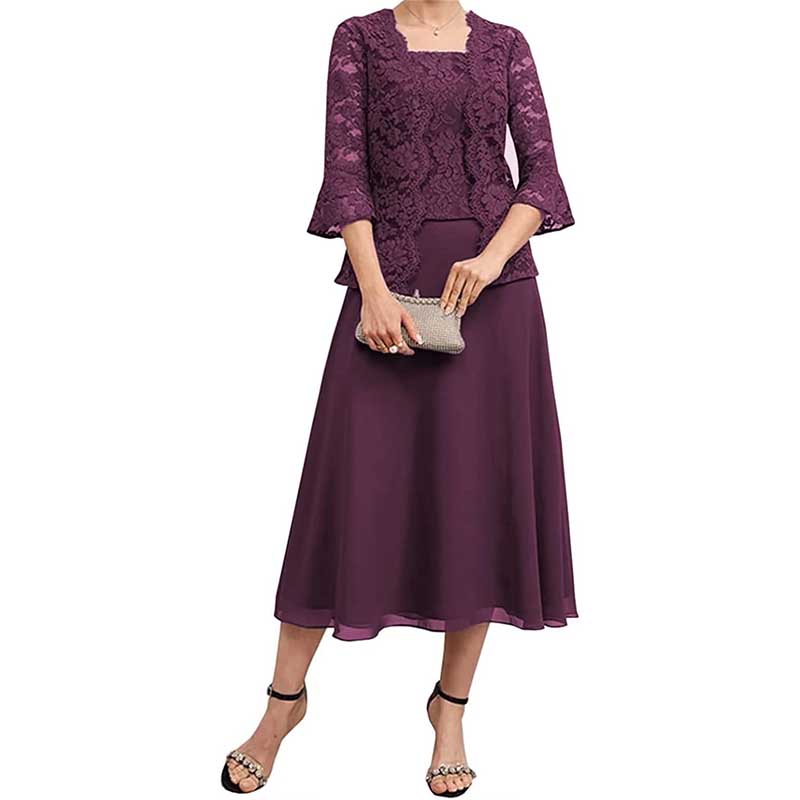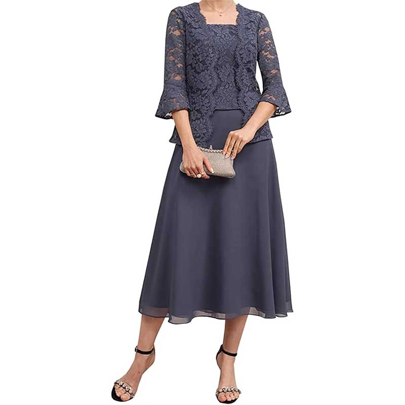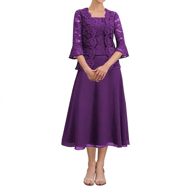 Wedding Suit Tea Length Mother of Groom Dresses with Jacket